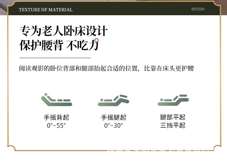 1M 無垢材高齢者アパート高齢者ガードレールベッド卸売家庭用手動昇降高齢者セルフケアアームレストベッドリハビリテーションベッド