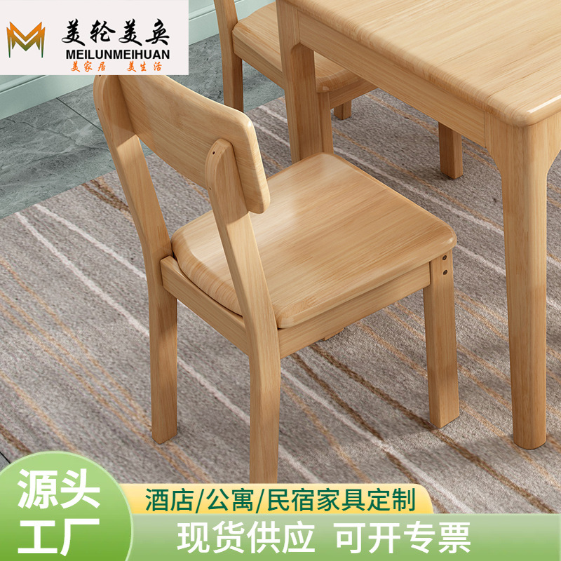 シンプルな無垢材の椅子、ゴム材のダイニングチェア、卸売家庭用椅子、背もたれ付き椅子、スツール、机、レストランのダイニングテーブルと椅子