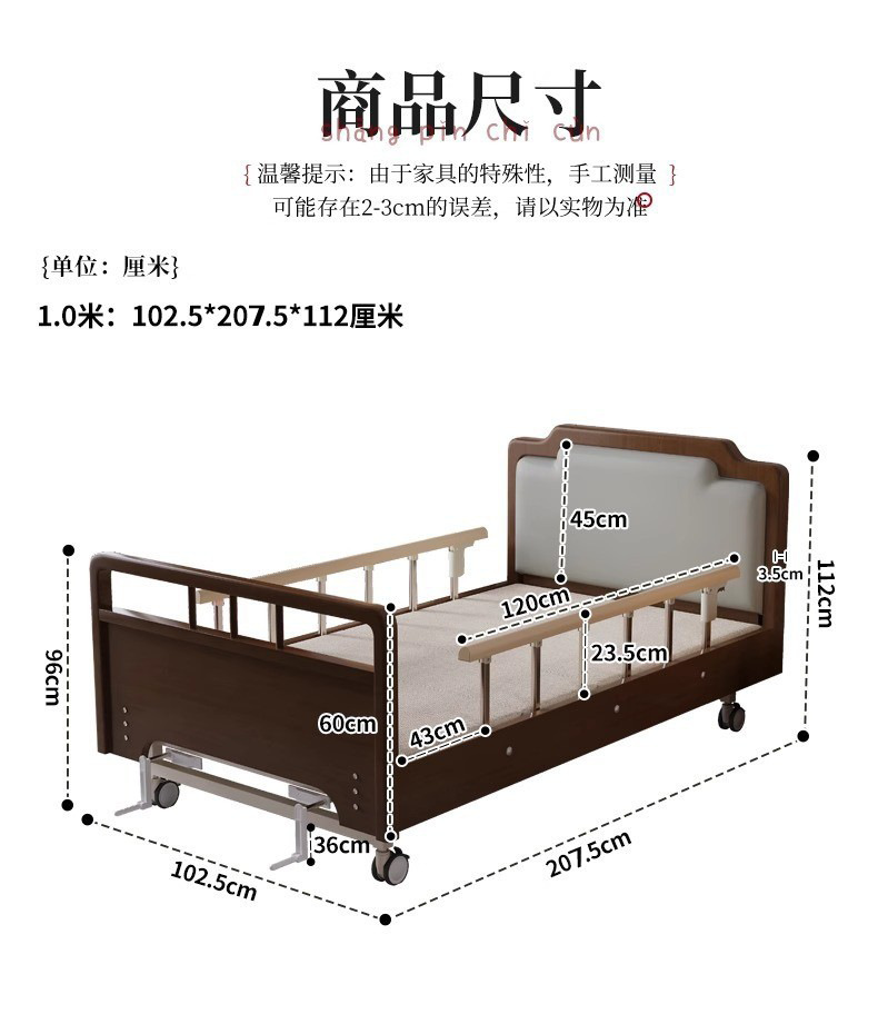 家具自理床老人床养老院养老机构可升降实木多功能护理床带护栏