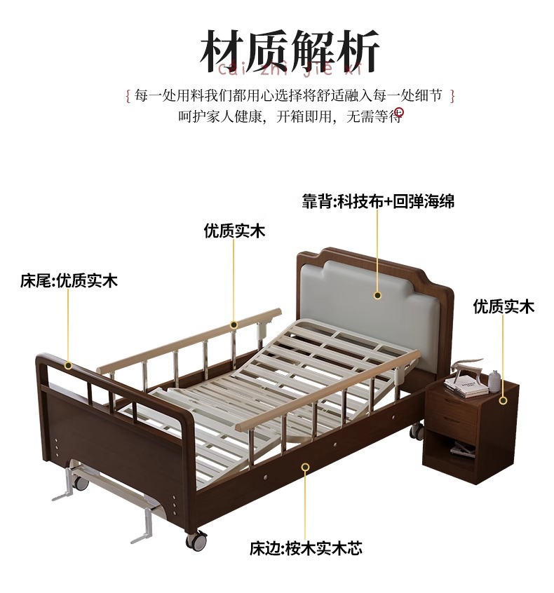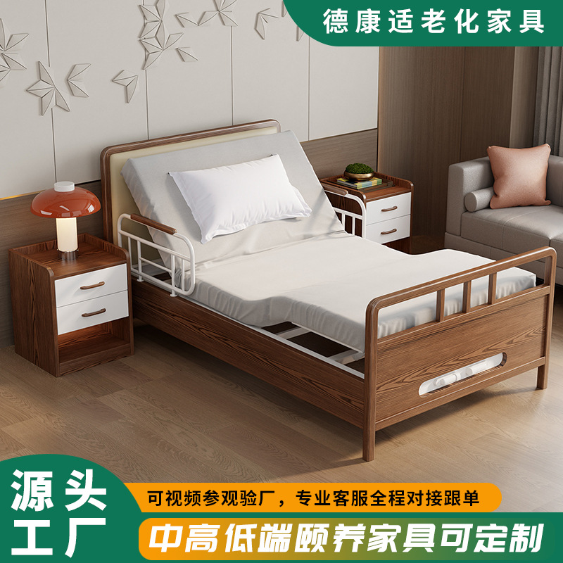 护理院敬老院床电动胡桃色实木多功能养老院床适老化康养中心家具