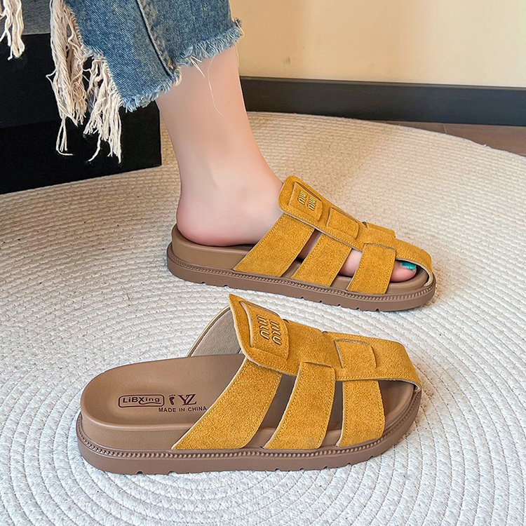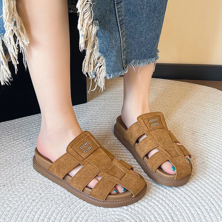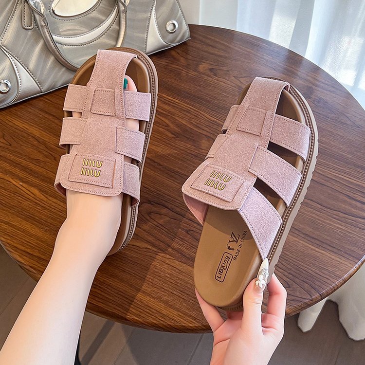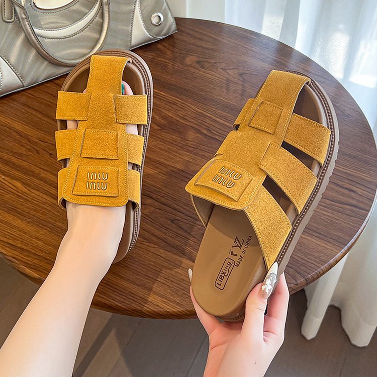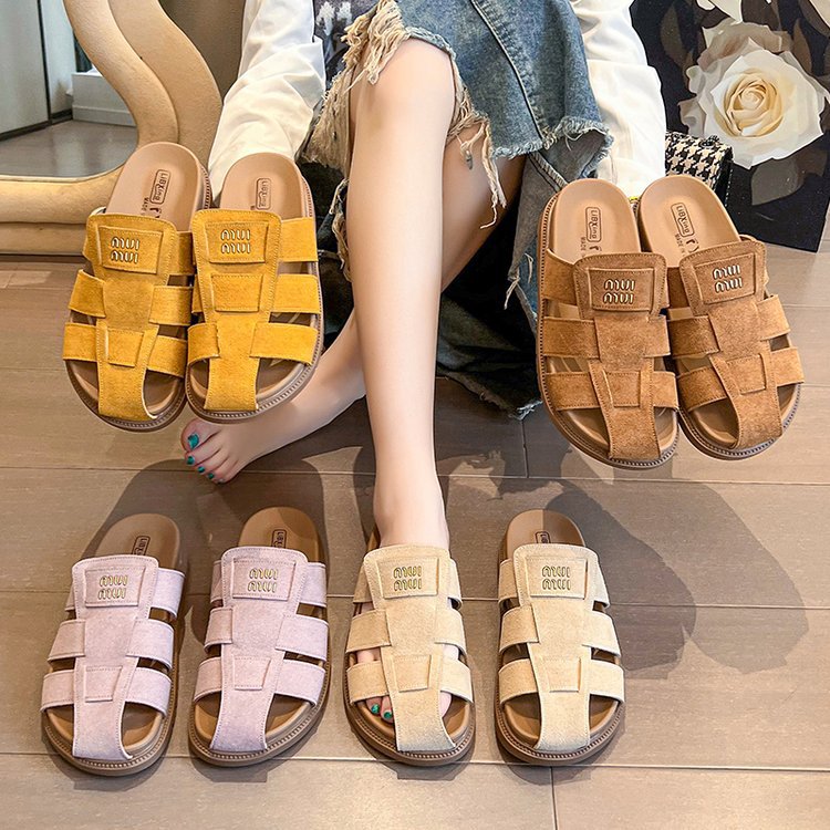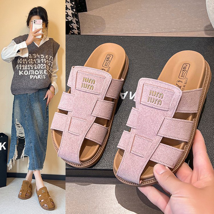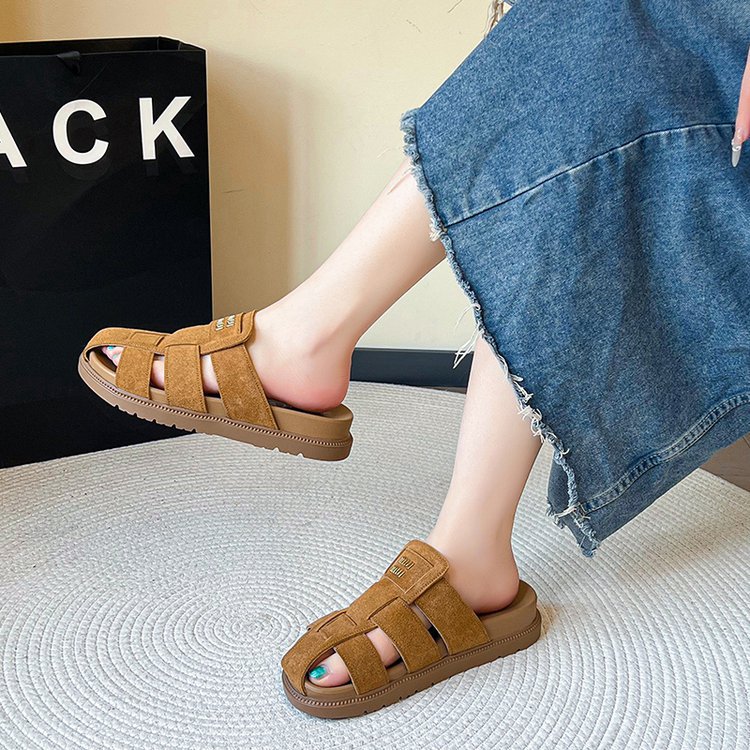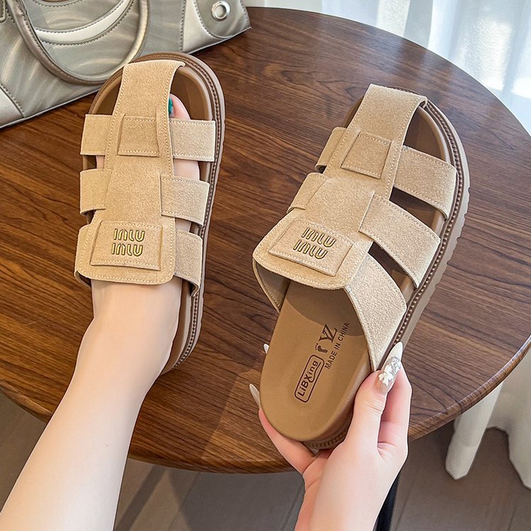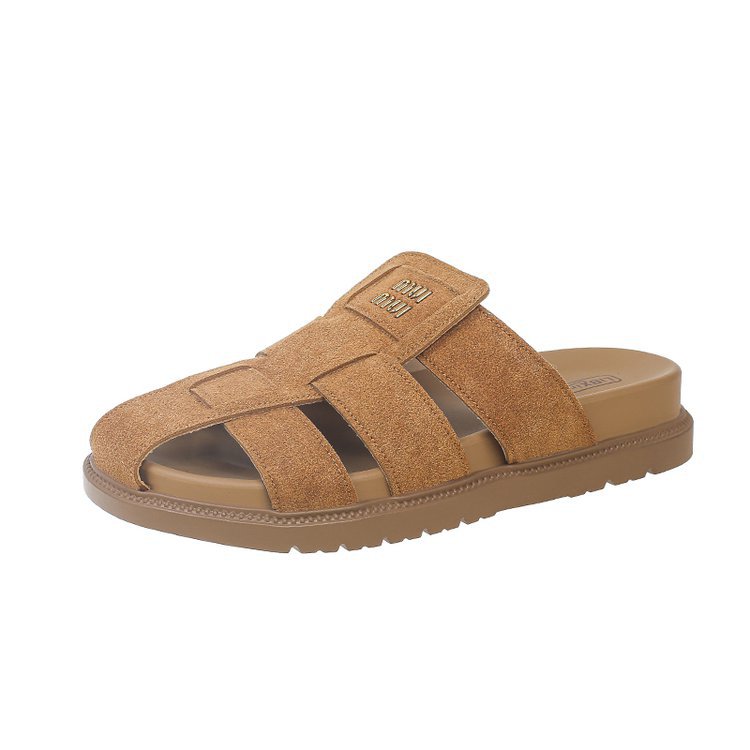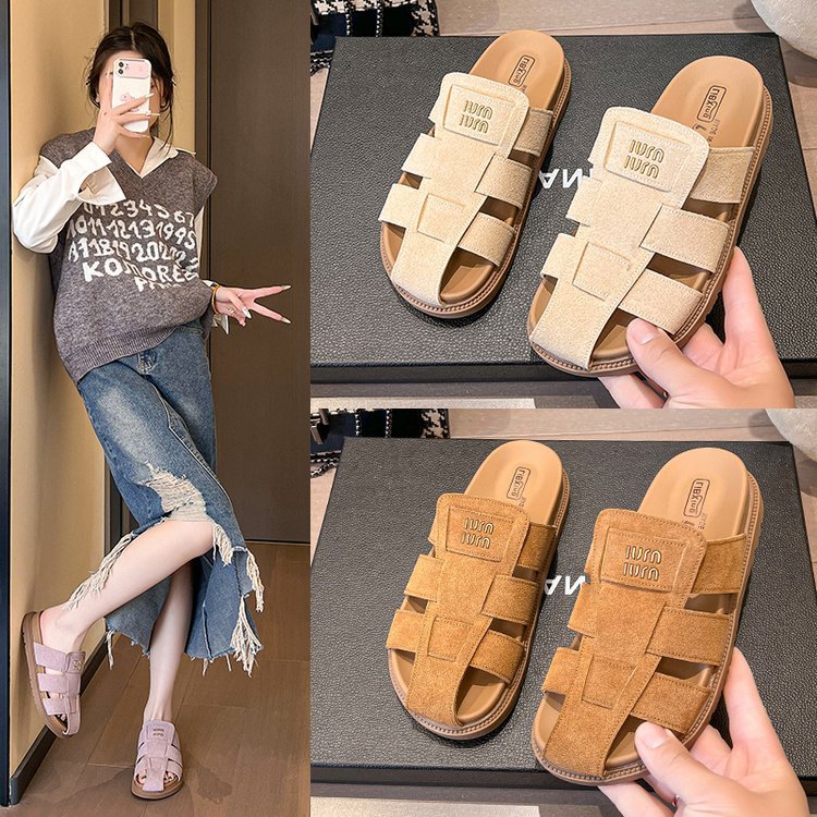 包頭ハーフスリッパ女性の夏のアウターウェア 2025 新しいフラットスリッポンローマサンダルレトロビルケンシュトックサンダル