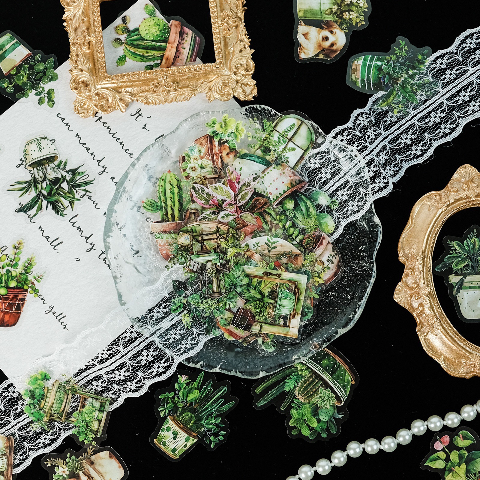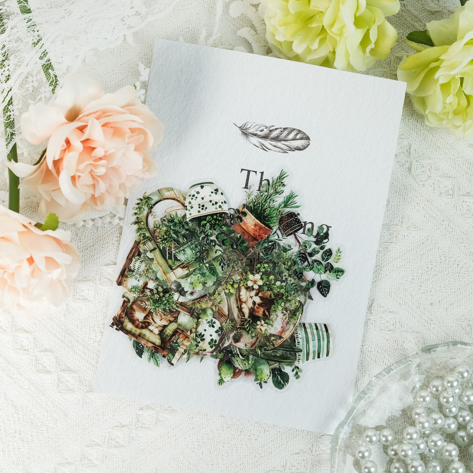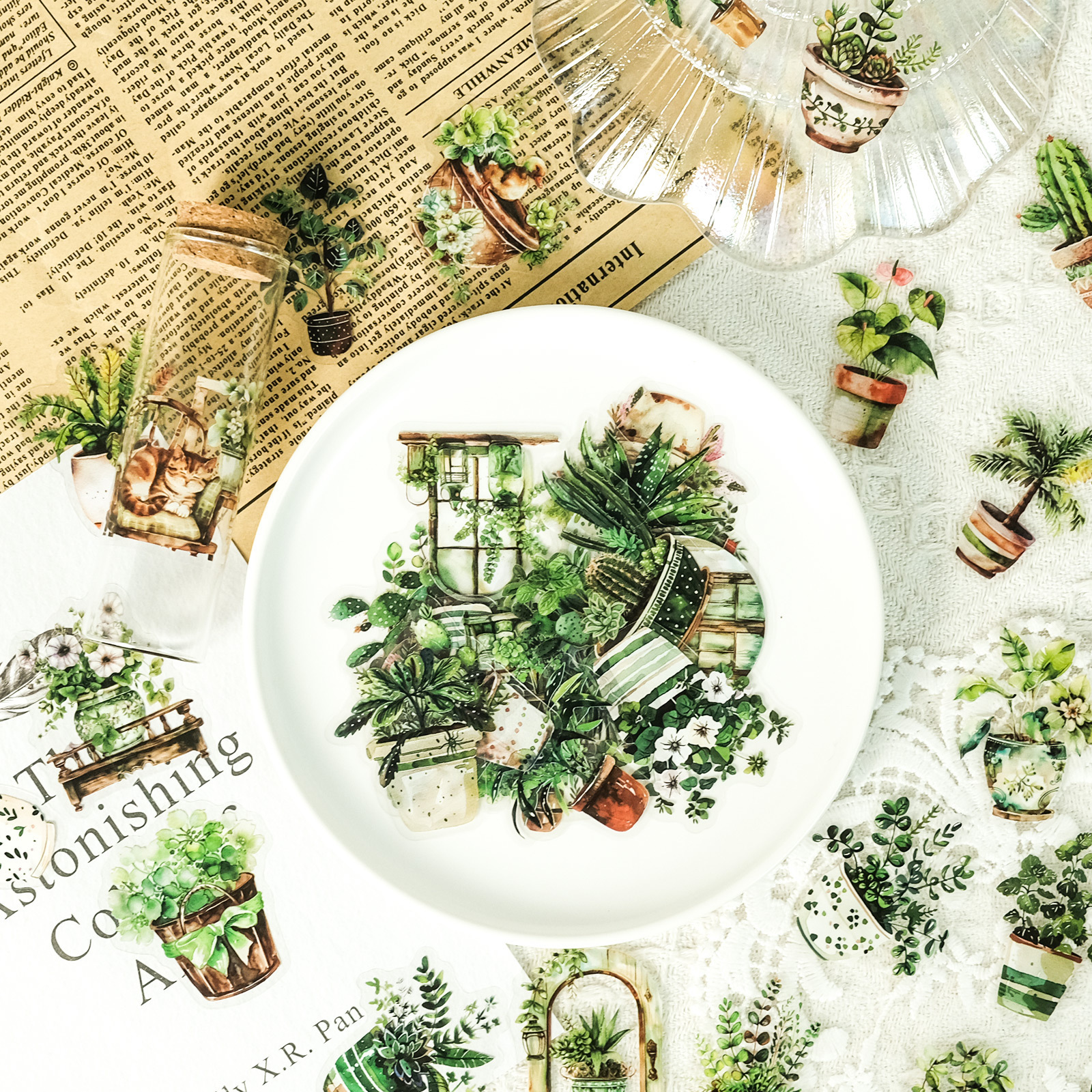 クロスボーダー50枚緑植PETシールDIY携帯ケース手帳冷蔵庫ノートスケートボード透明防水ステッカー