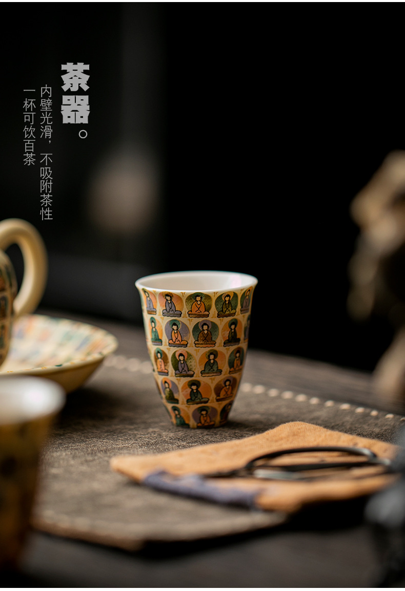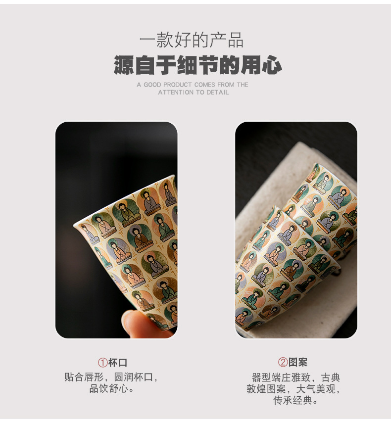 敦煌千仏ティーカップコースターセット家庭用カンフーセラミックティーカップハイエンドマスターカップ香りカップシングルカップ