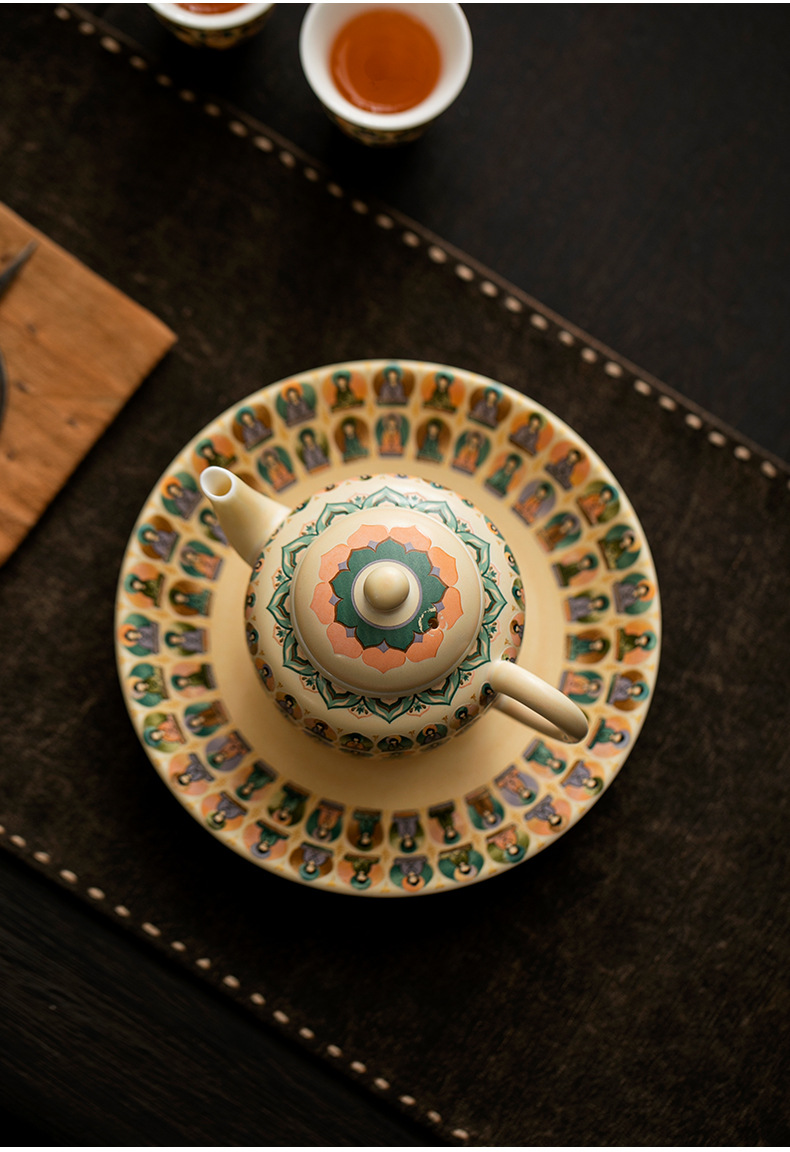 セラミック千仏ポット、高級乾燥茶台、レトロフルーツプレート、ティーセットアクセサリー、水貯蔵ポットホルダー、断熱ティーマット
