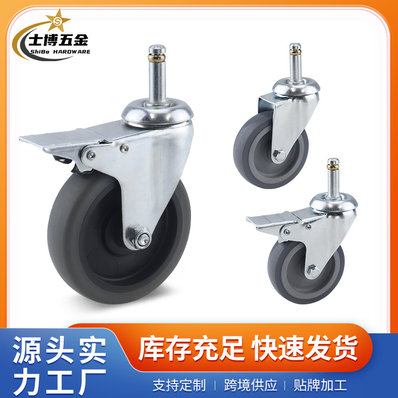 工場直販 2inch 3inch 軽量静音ダイニングカート グレーのゴム製キャスター 4inch ブレーキ付きユニバーサルシェルフカートホイール