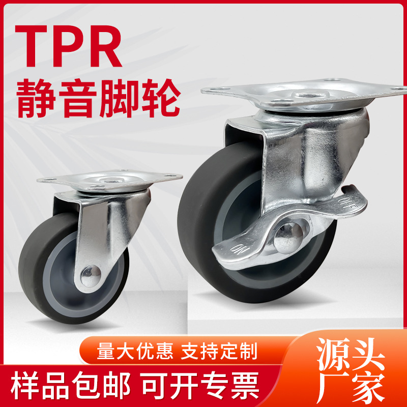 広東卸売2インチ50mmtprキャスターワゴン万向輪ゴムプーリー回転輪静音家具輪