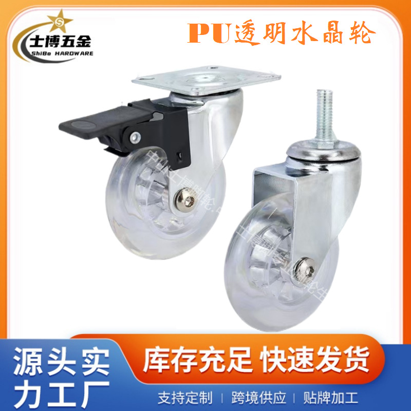 2inch 3inch クリスタル透明ホイールネジロッド M8*15 ユニバーサルキャスター静音 PU ブレーキ付き家具ホイール