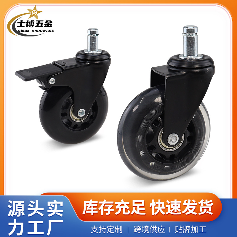 Amazon越境セット 3inch本脚万能ホイール 透明ホイール オフィスチェアキャスター 静音PUポリウレタン滑車