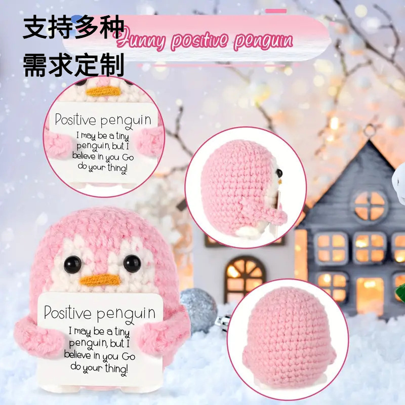 クロスボーダーtemuの爆発的な手作りのぬいぐるみ積極的なペンギンが動物のかわいいニット人形の人形の置物を責める
