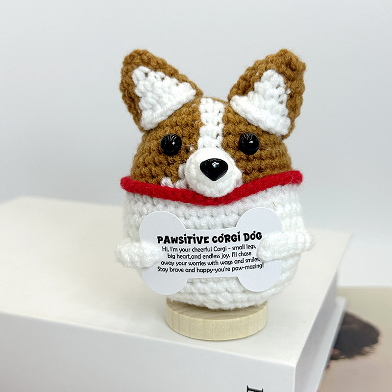 跨境热销成品毛线针织玩偶摆件卡通小玩偶编织柯基狗毛线钩织装饰