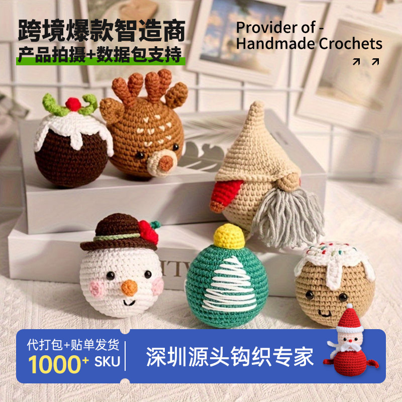 亚马逊新品毛线钩织圣诞老人玩偶手工编织圣诞树圣诞雪人节日摆件