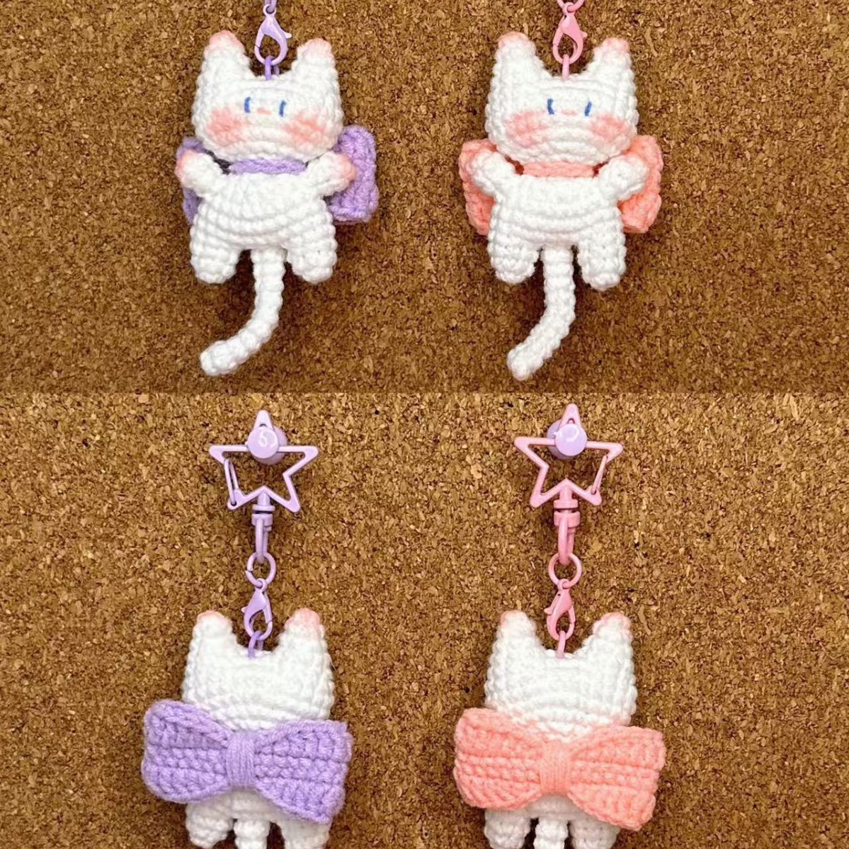 蝶結びのかわいい子猫ウール手作り DIY 材料バッグ織りバッグキーホルダー自家製ペンダントギフト退屈を和らげる