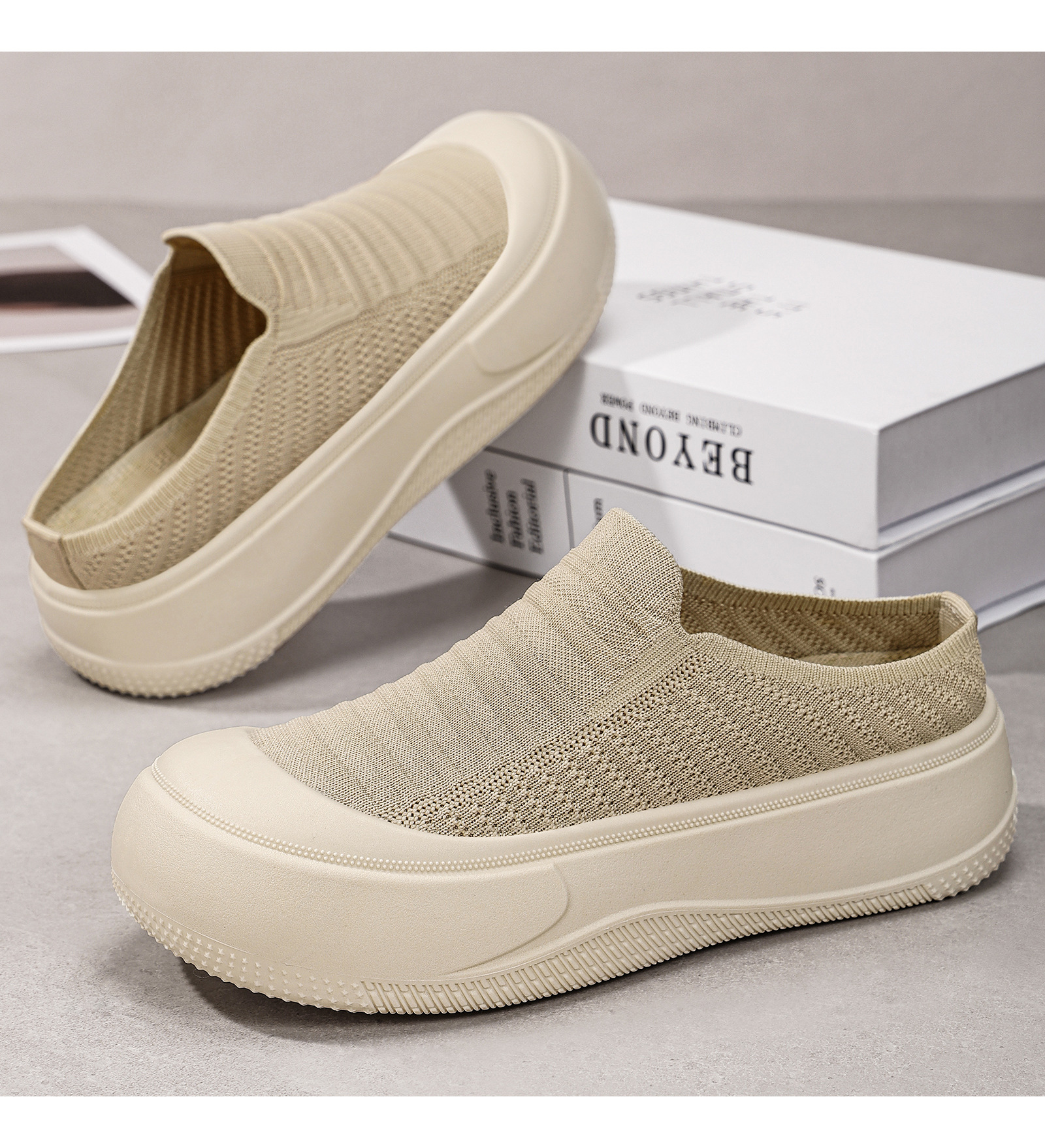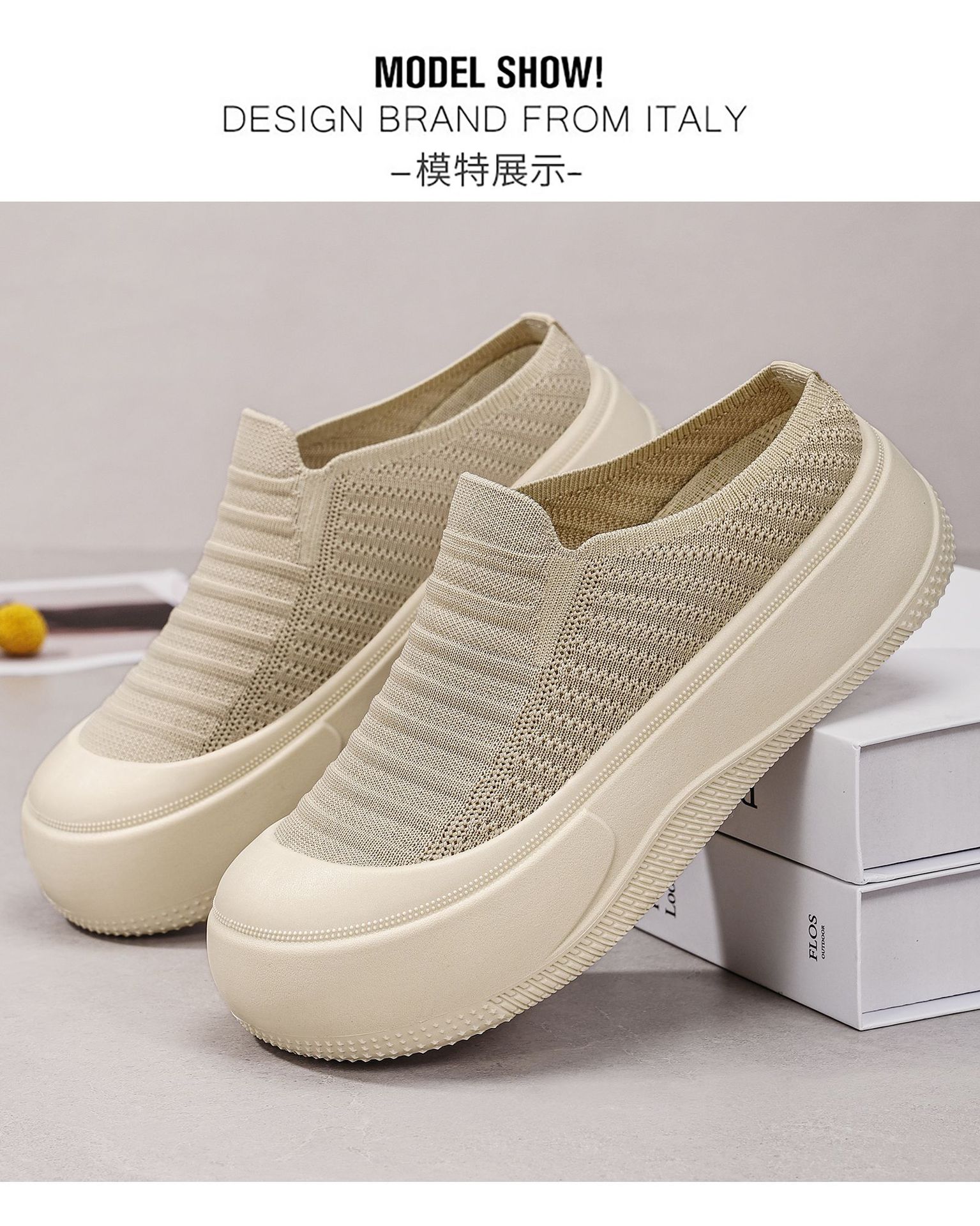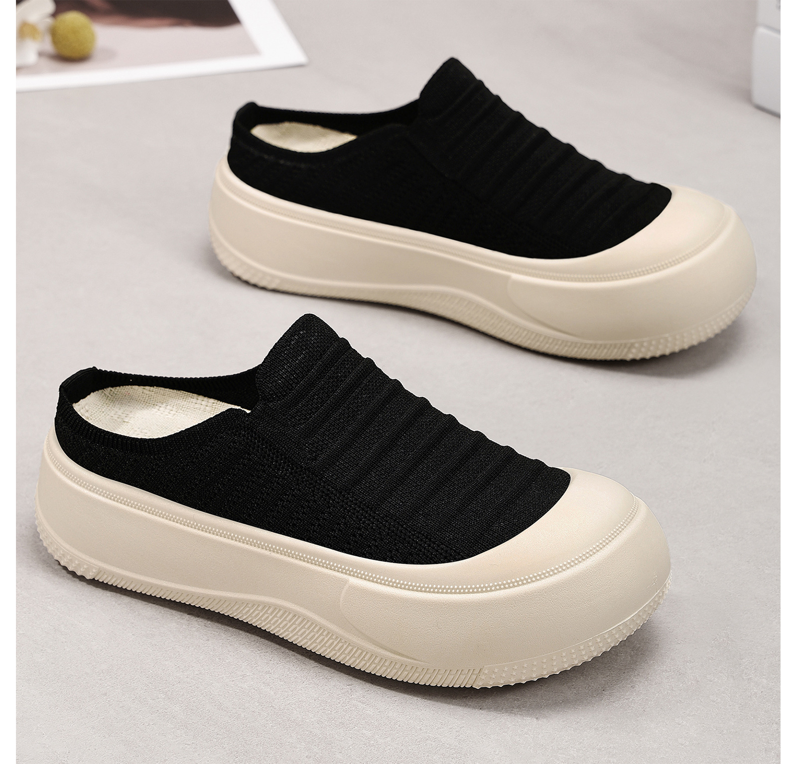 女性用夏用通気性厚底シューズ、外履き用包頭スリッパ、無地浅口身長アップシューズ、シンプルなソフトソールハーフスリッパ