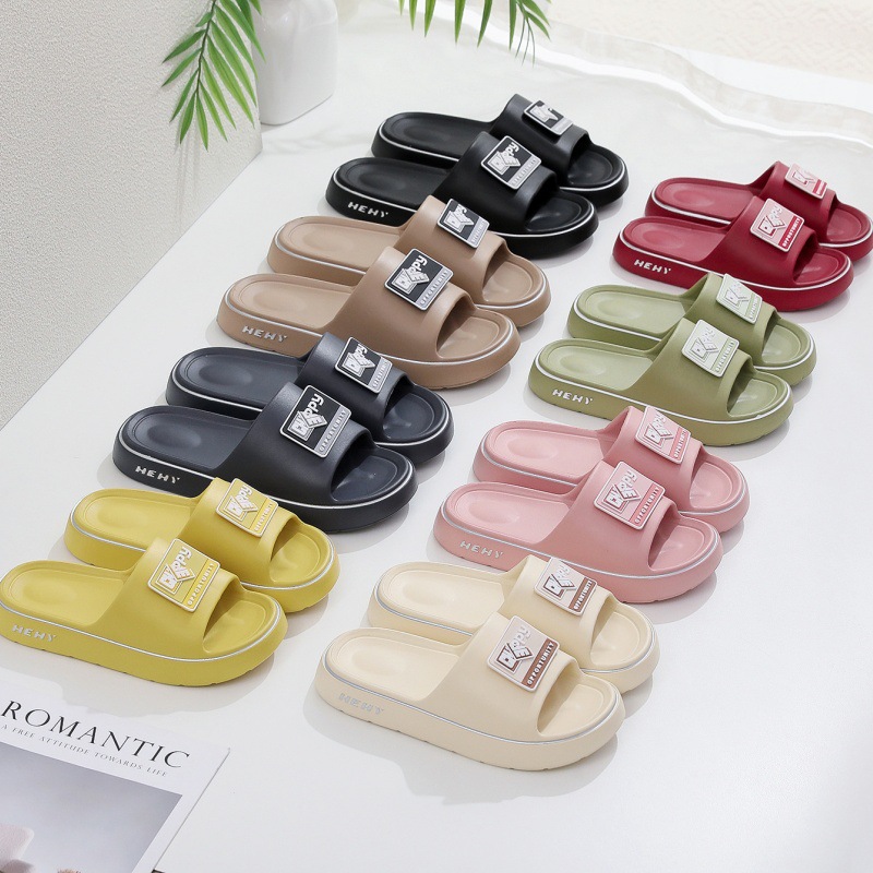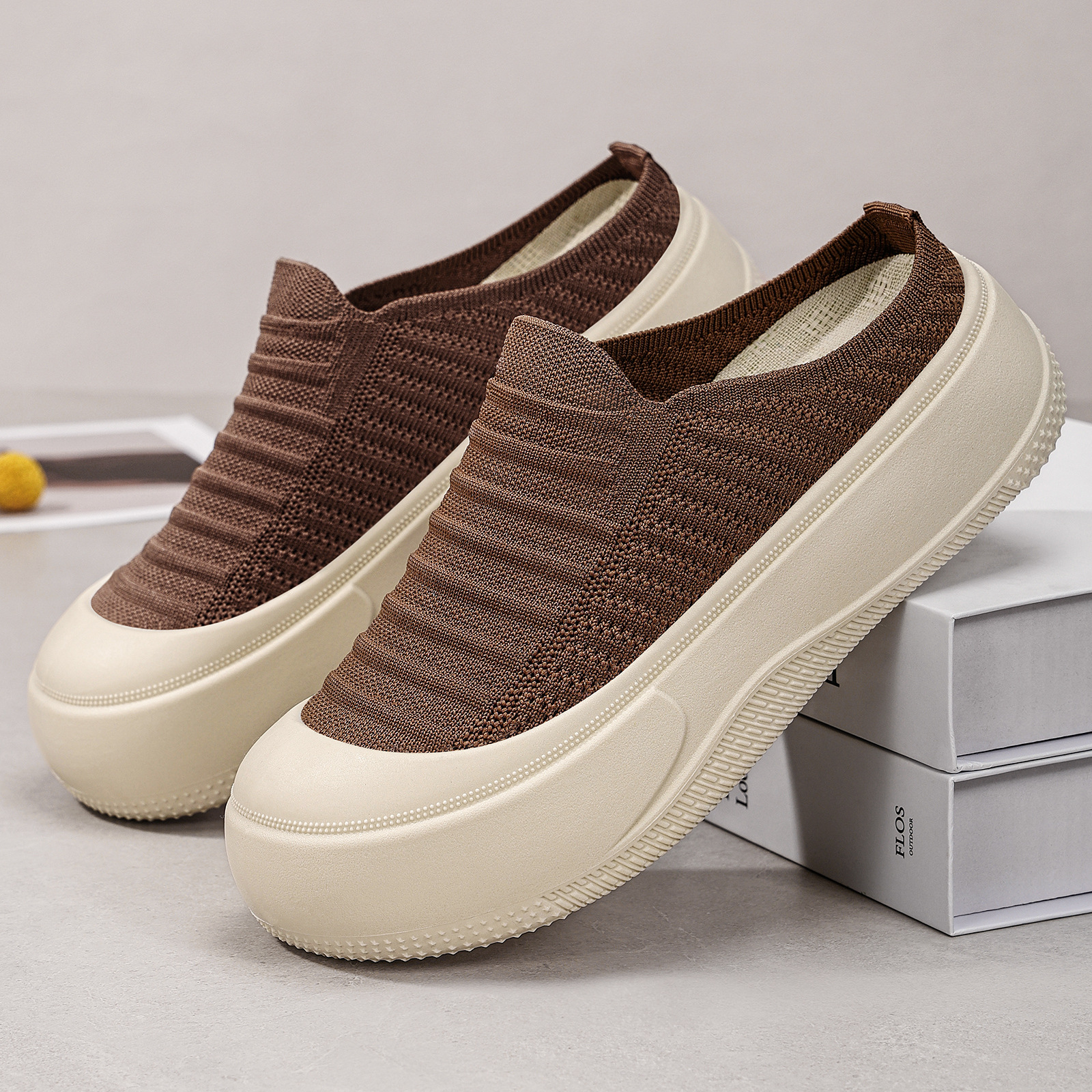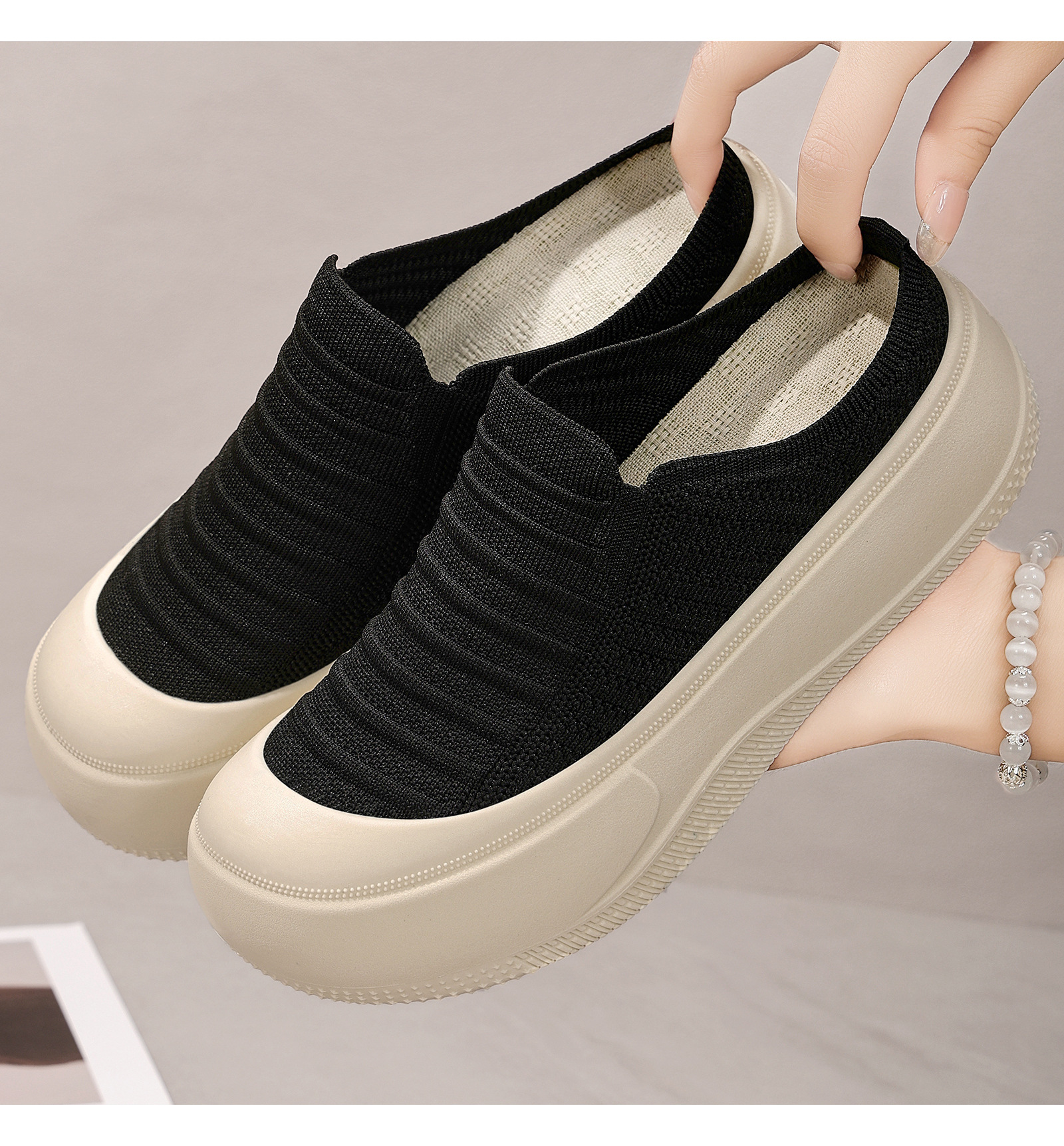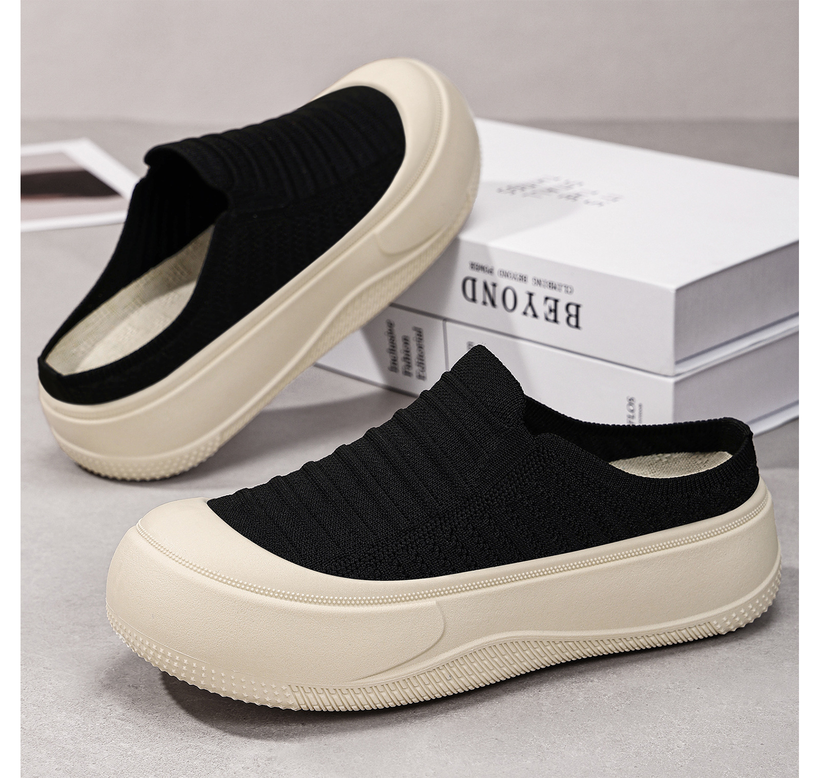 女性用夏用通気性厚底シューズ、外履き用包頭スリッパ、無地浅口身長アップシューズ、シンプルなソフトソールハーフスリッパ