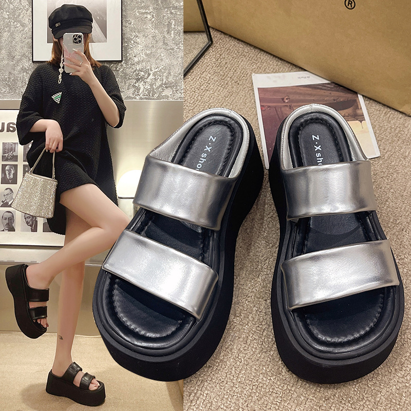 极简厚底凉拖女2025夏季时尚外穿度假拖鞋小个子增高休闲一字拖潮