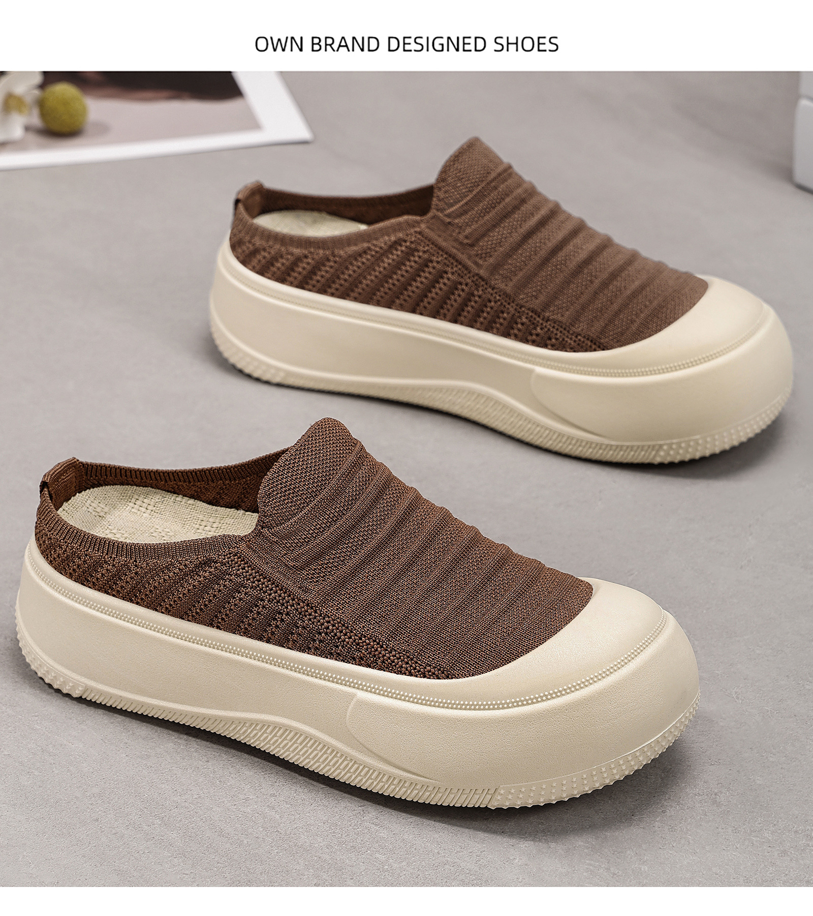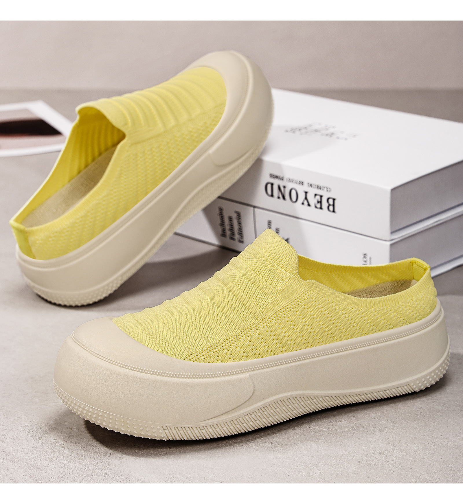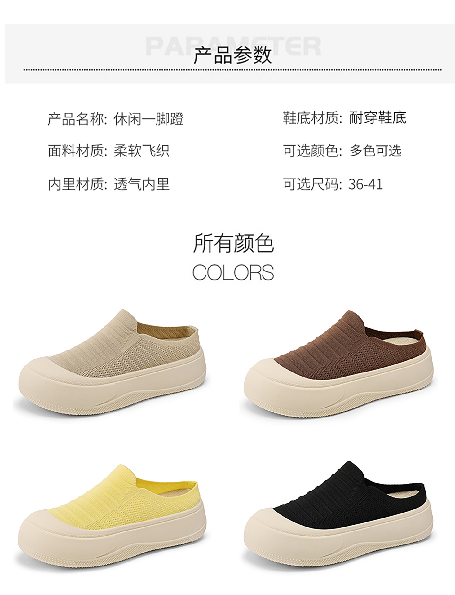 女性用靴、夏の新しいカジュアルスリッパ、フライウーブン通気性のあるクロスボーダードロップシッピング婦人靴、女性用スリッポンハーフスリッポンスリッポン