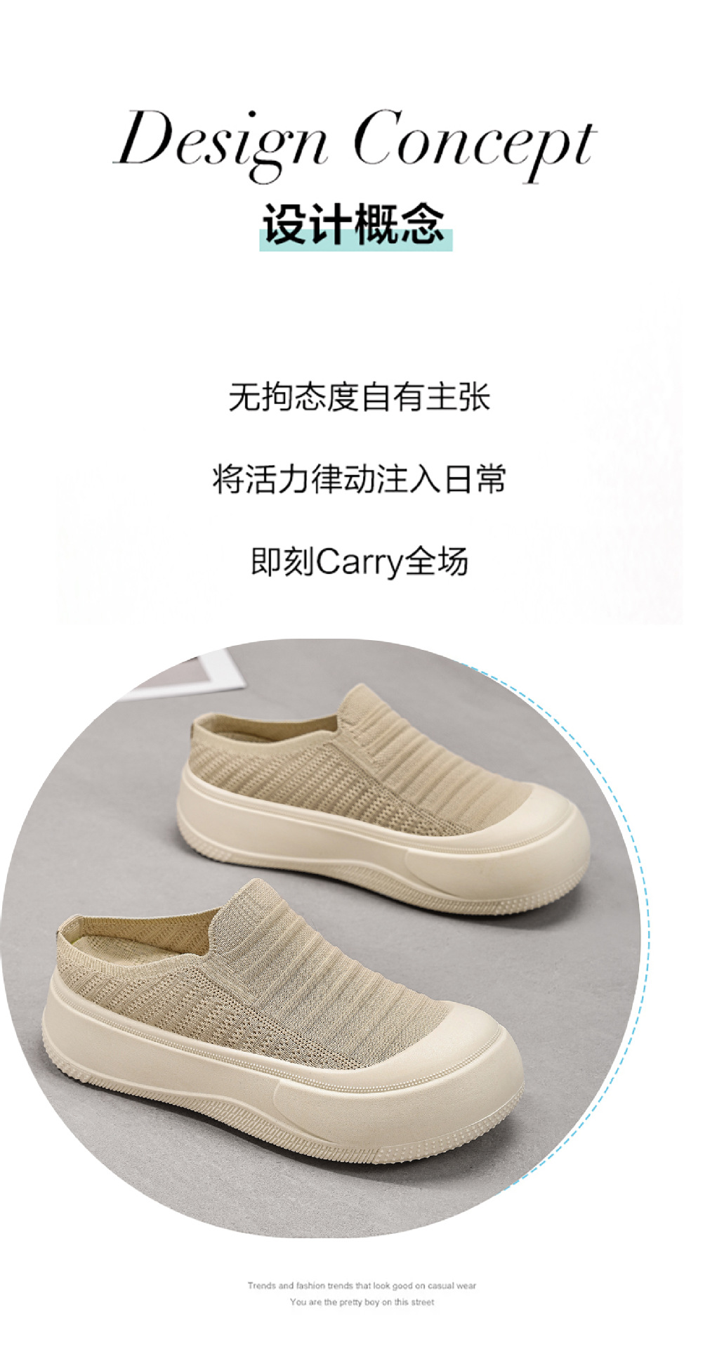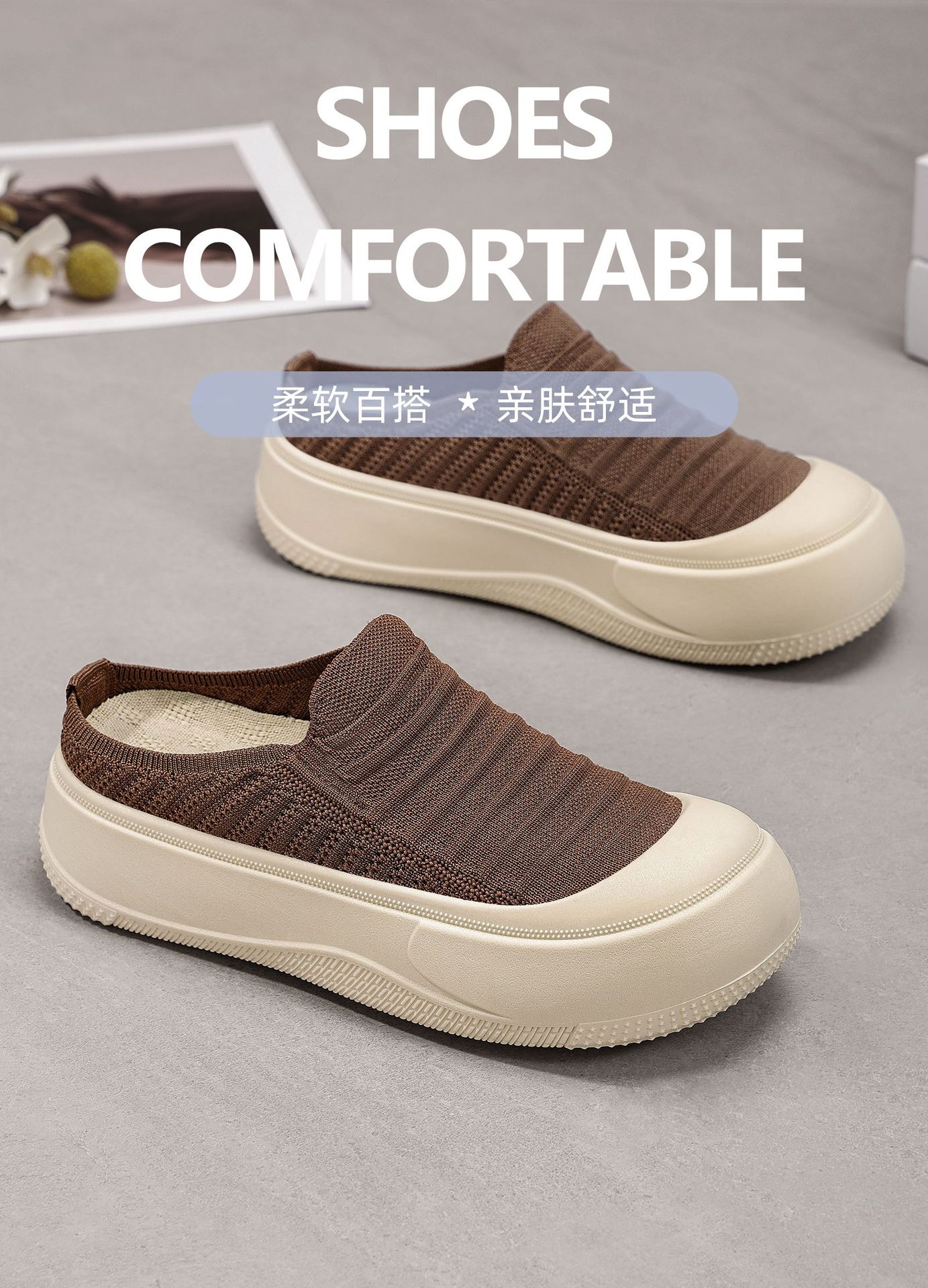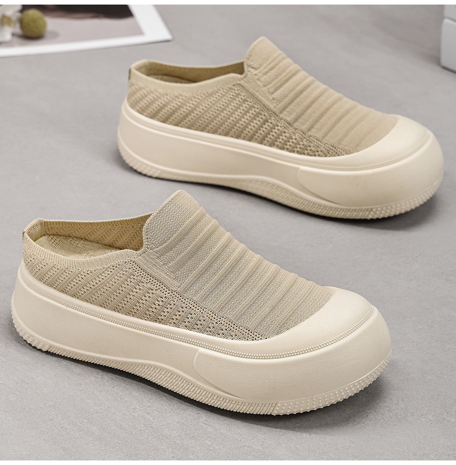 女性用靴、夏の新しいカジュアルスリッパ、フライウーブン通気性のあるクロスボーダードロップシッピング婦人靴、女性用スリッポンハーフスリッポンスリッポン