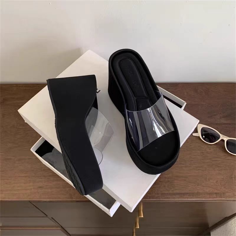 厚底拖鞋女外穿仙女风胖mm宽胖脚白色透明凉鞋增高跟凉拖鞋一脚蹬