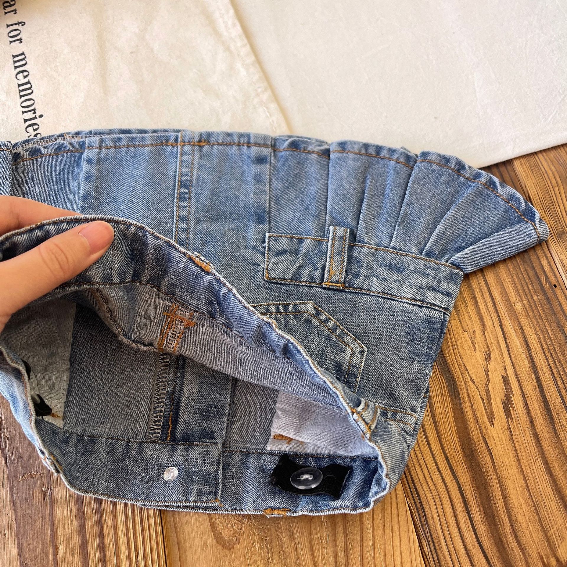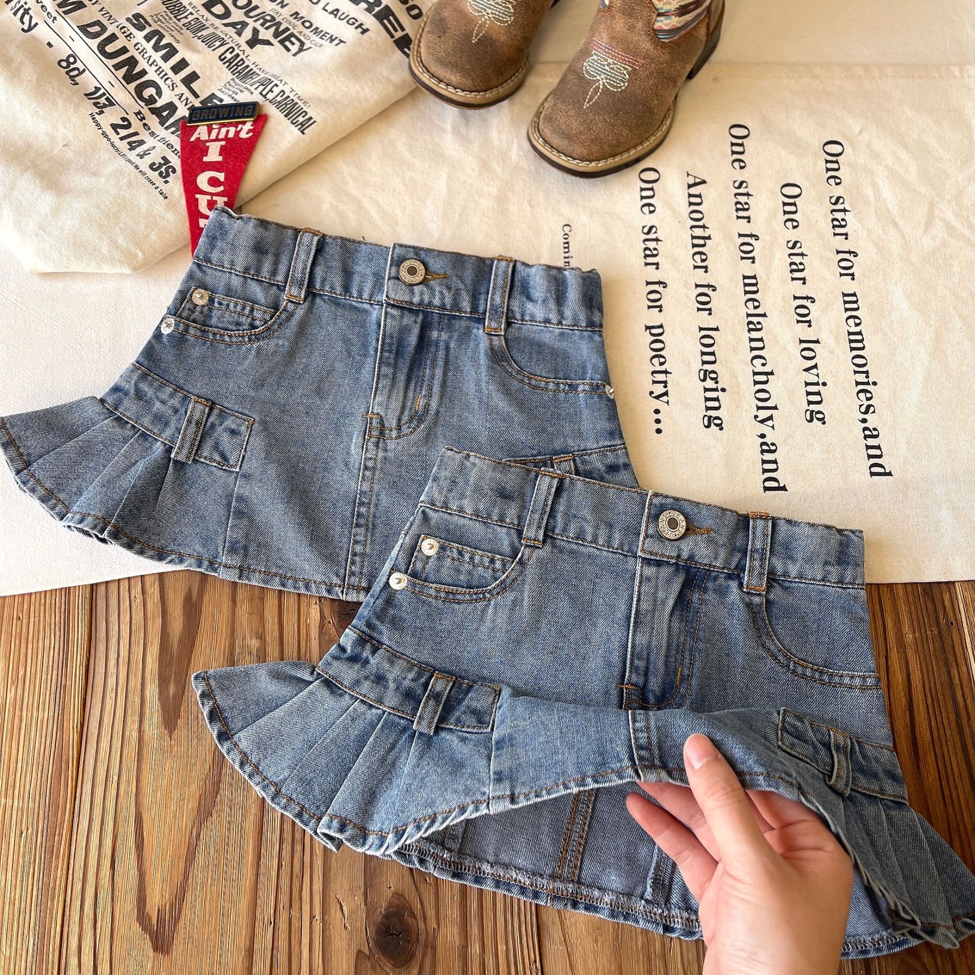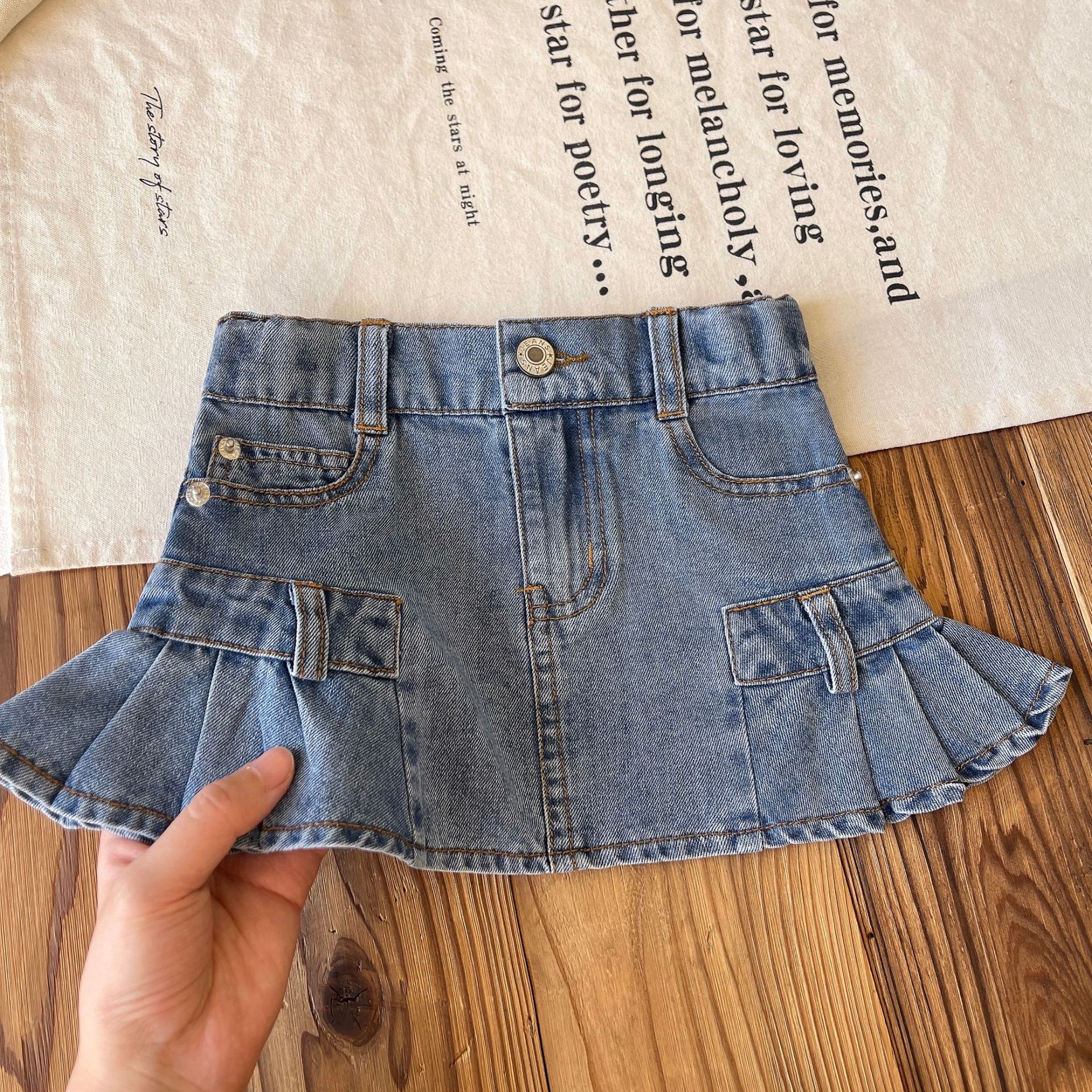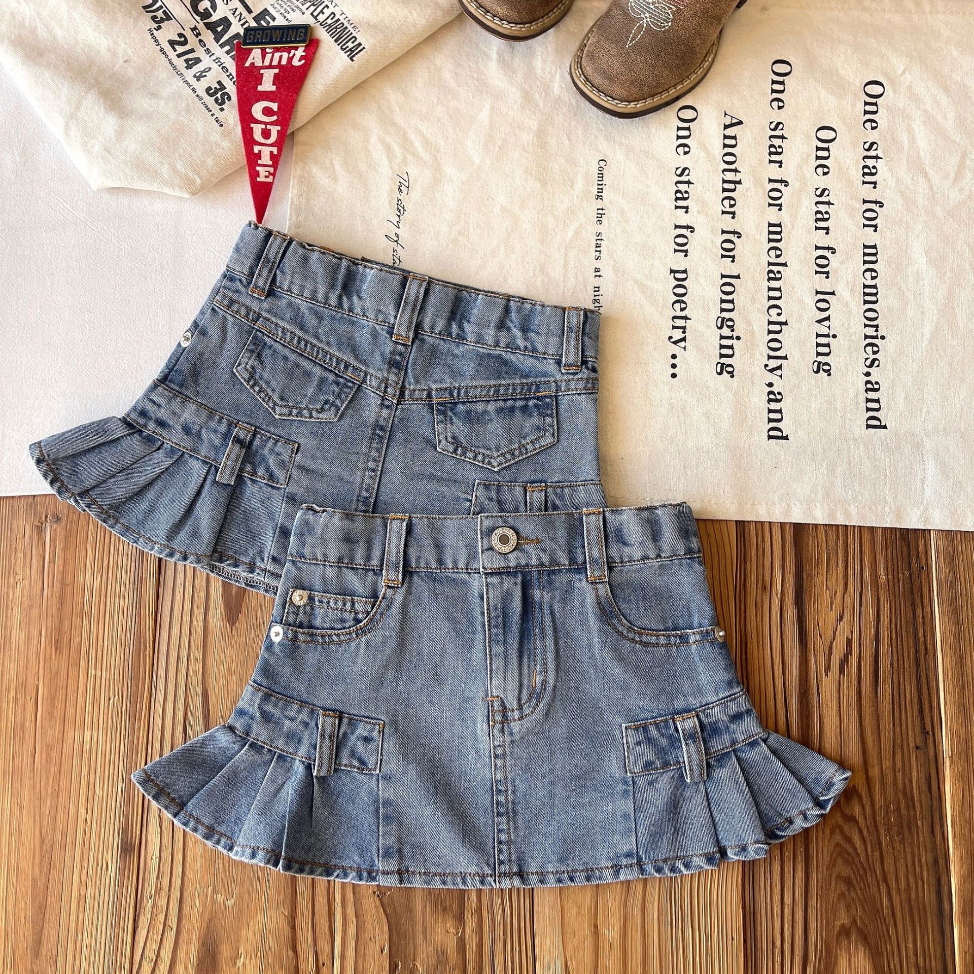 【现货】日系中古女童复古口袋木耳边牛仔花苞裙短裙