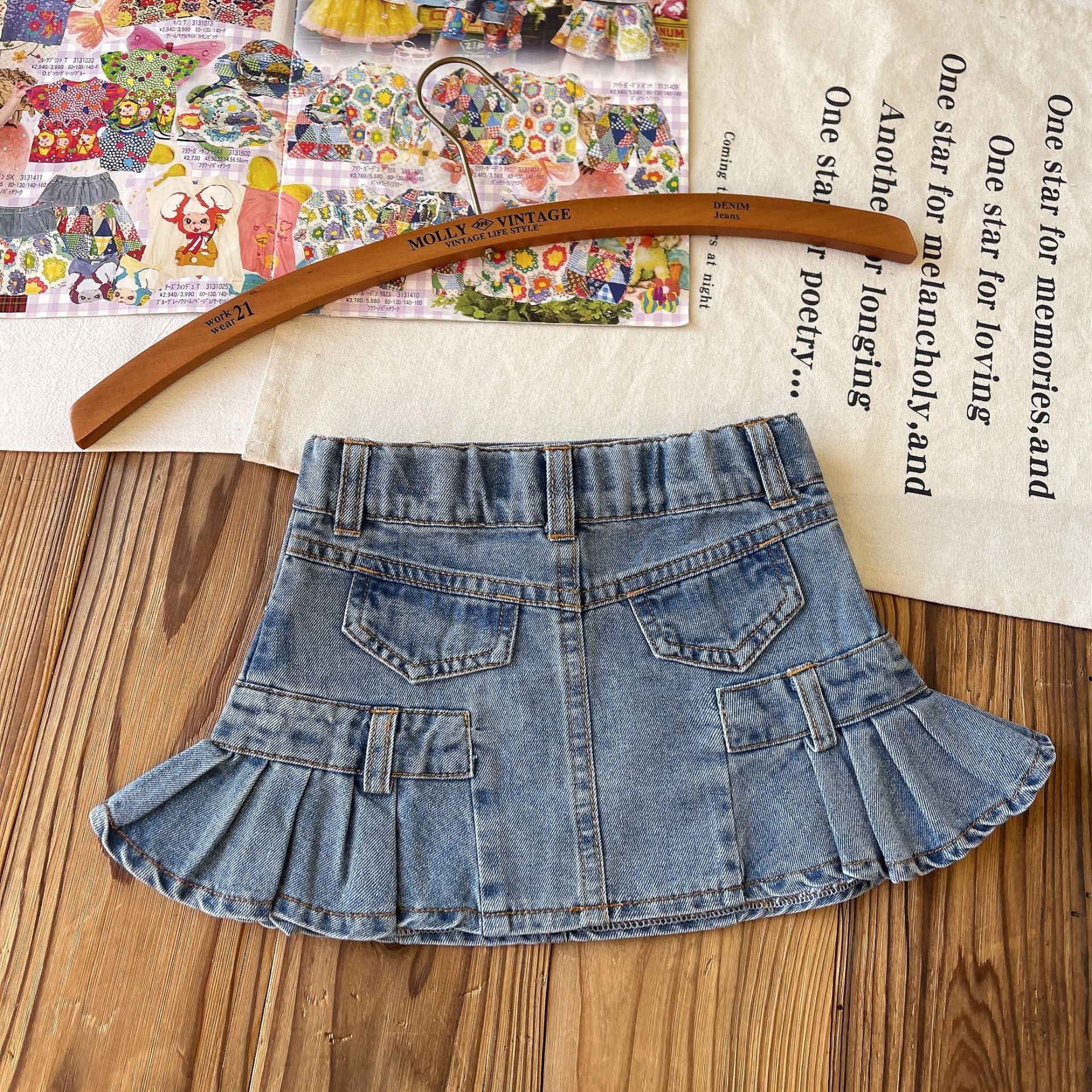 【現物】日系中古子供服rj45女児の木の耳にデニムのスカート