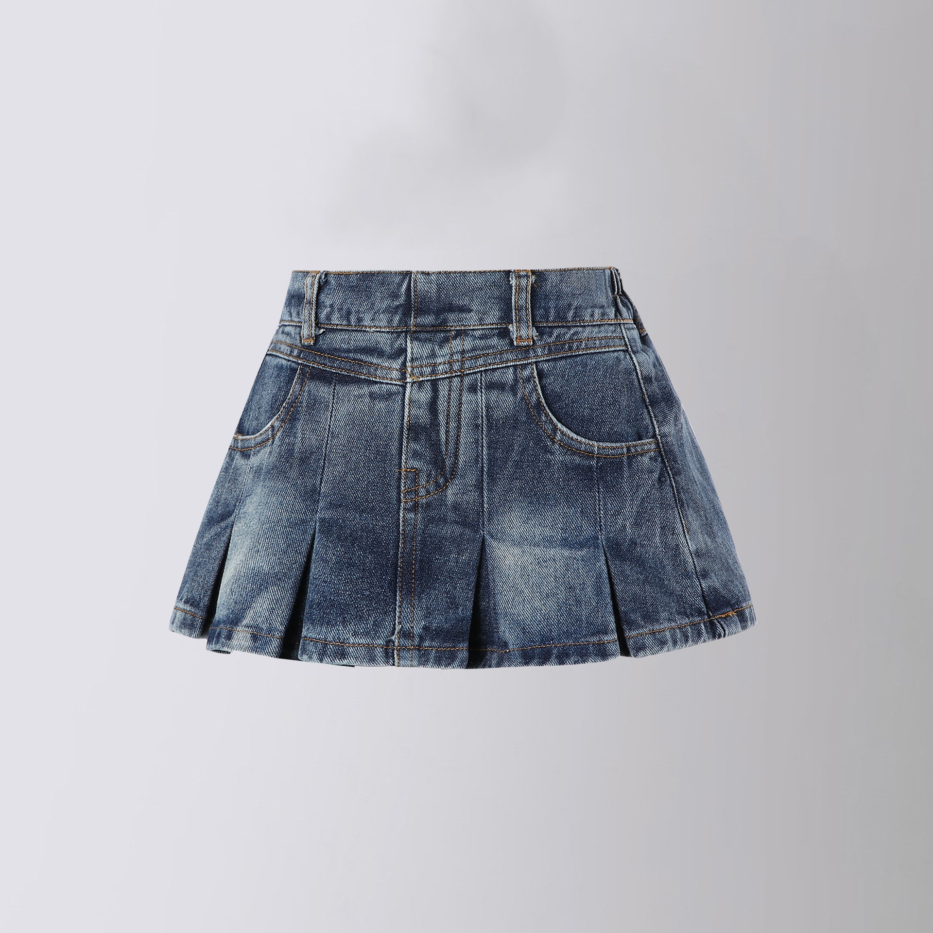 ファッショナブルで多用途なレトロな女の子のハーフレングスのデニムスカートウエスト春と夏の新しいカレッジスタイルのデニムプリーツスカートトレンディ
