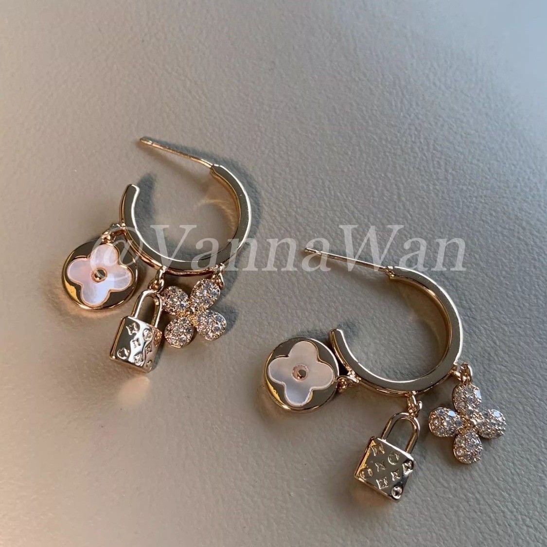 レトロマルチペンダントタッセルイヤリング女性用ホワイトシェルロックヘッドフラッシュダイヤモンドフラワーイヤリング四つ葉のクローバー気質ハイエンドデザインイヤリング