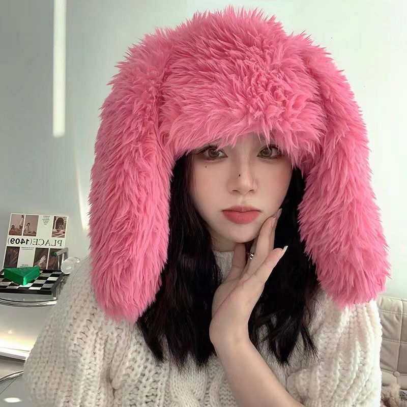 新型雷鋒帽 女用 ふわふわ 暖かい 防寒 ふわふわ帽子 耳当て付き 可愛い 多用途 ウサギちゃん キュート 秋冬 フラットトップ