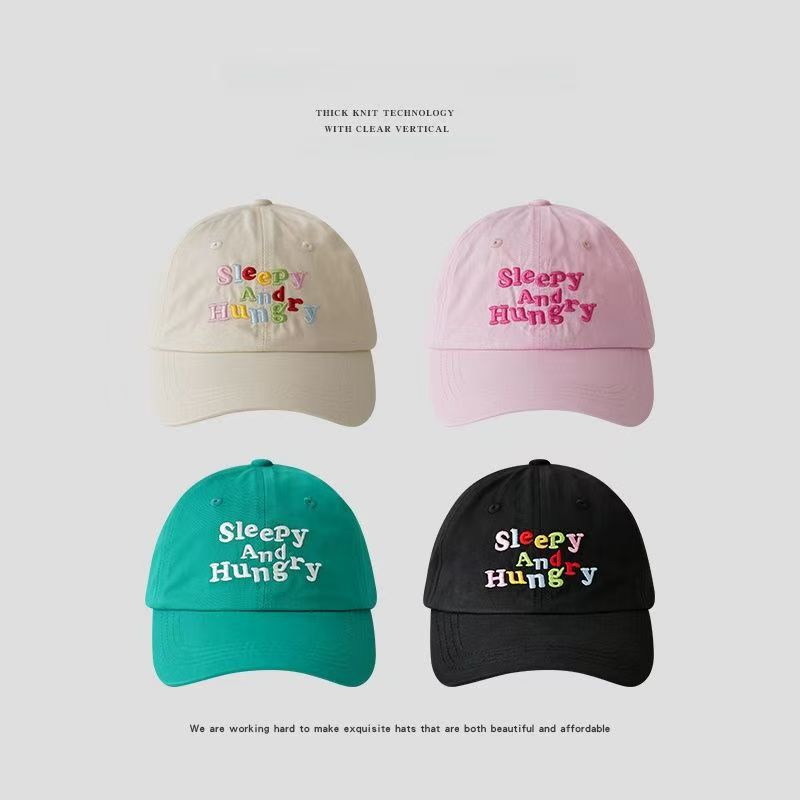 女性用の新しいカラフルな文字刺繍入り純綿野球帽、韓国風、多用途のつば広ひさしキャップ、頭囲が大きく、顔が小さく見える
