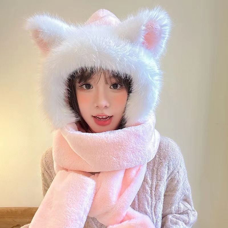 2023年の新型プリンセスの毛の帽子の女性の冬の保温の寒さに抵抗するキツネの耳のワンピースの2つのセットのかわいい高顔