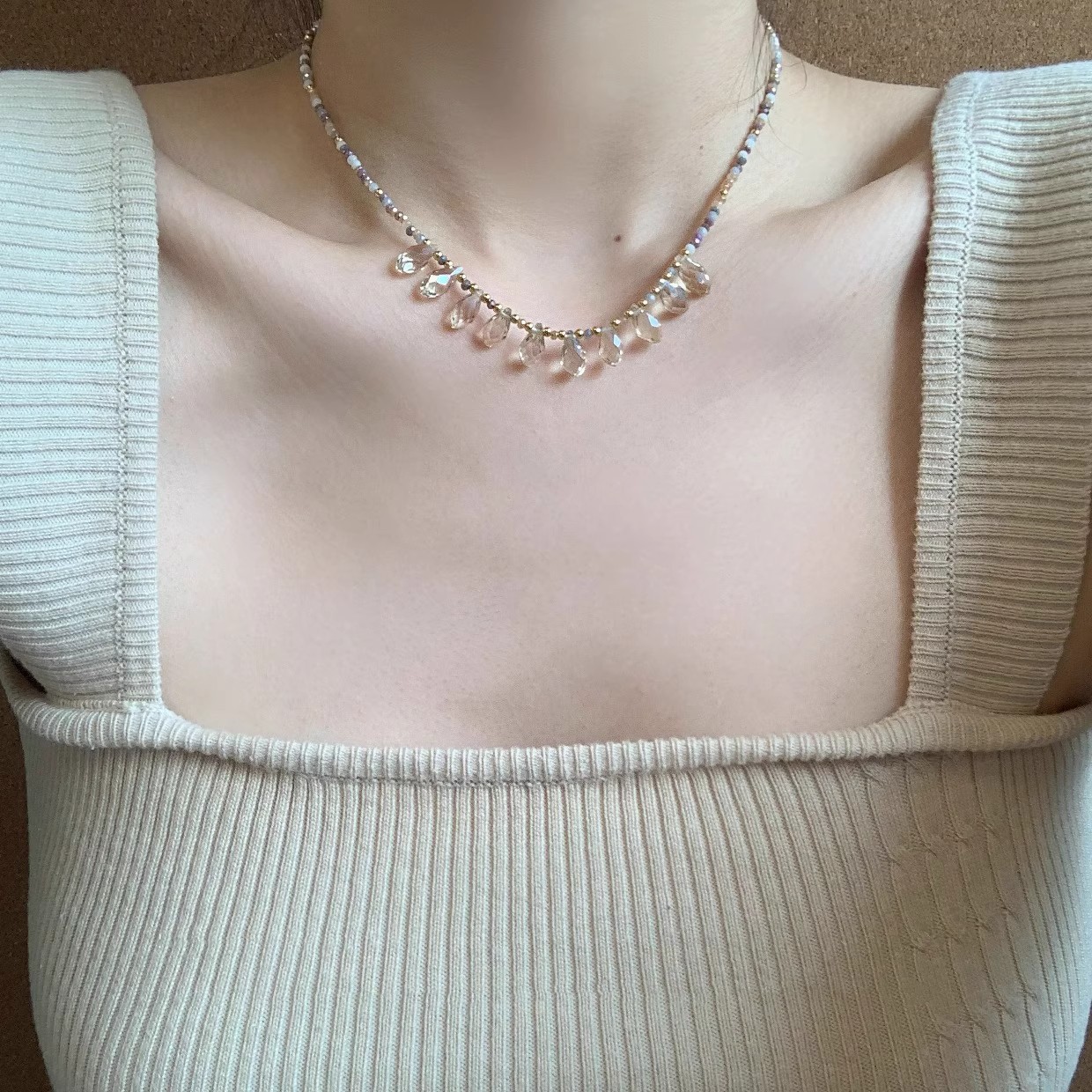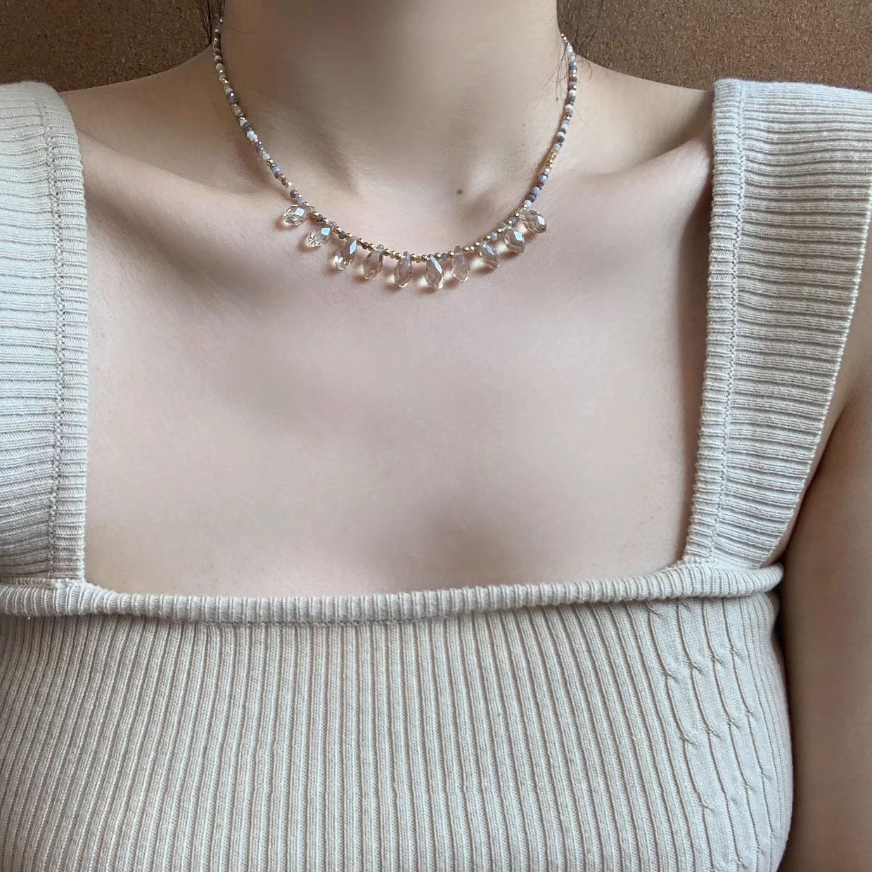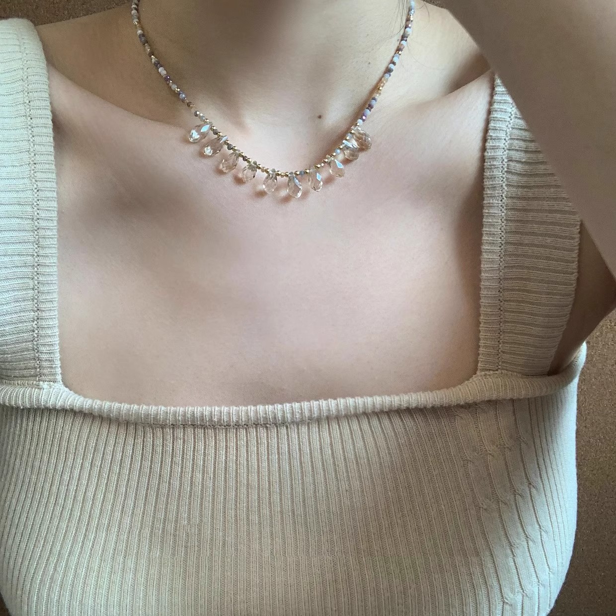 2025新型超仙気ビーズ水滴ネックレス女性夏軽豪華風ins大衆デザイン気質