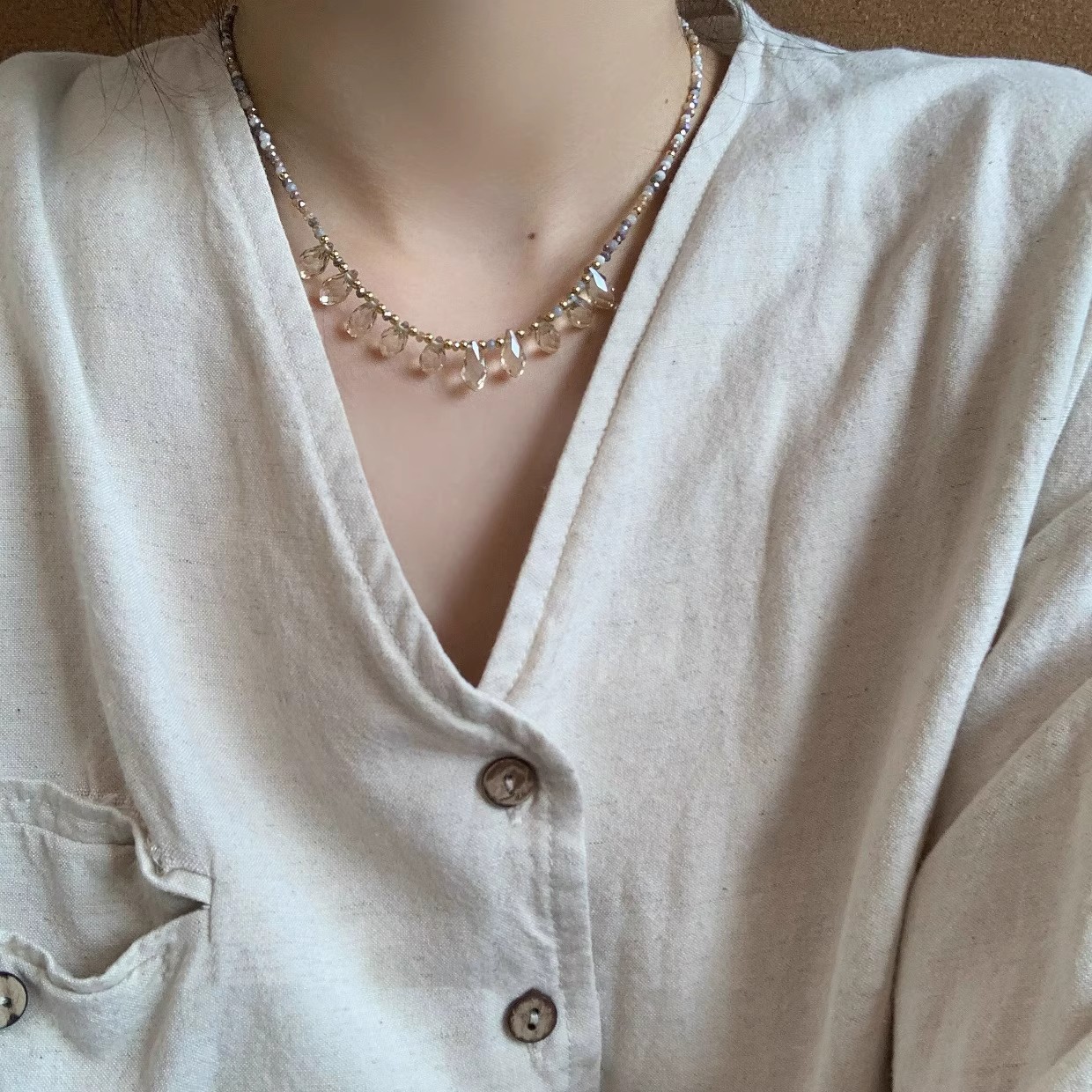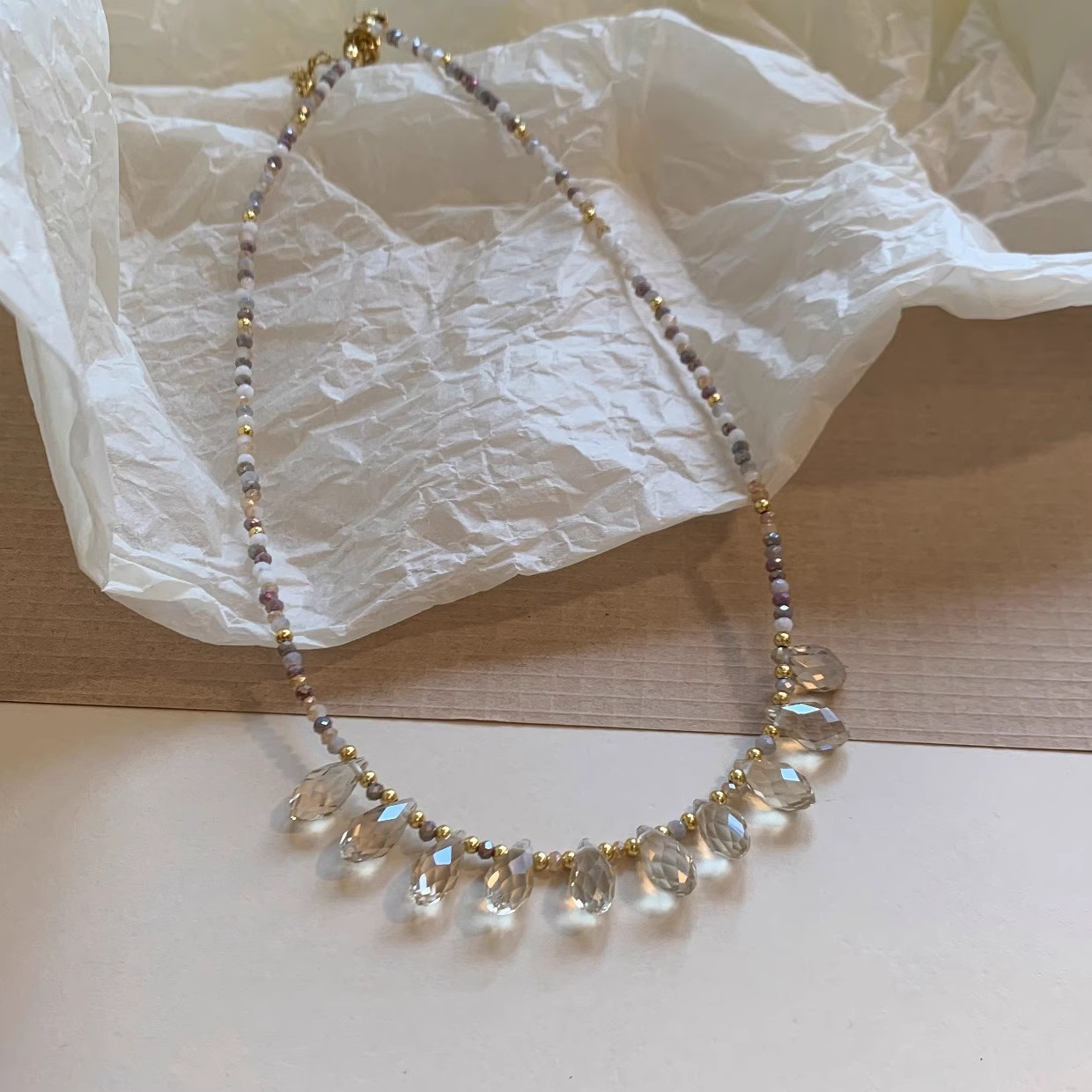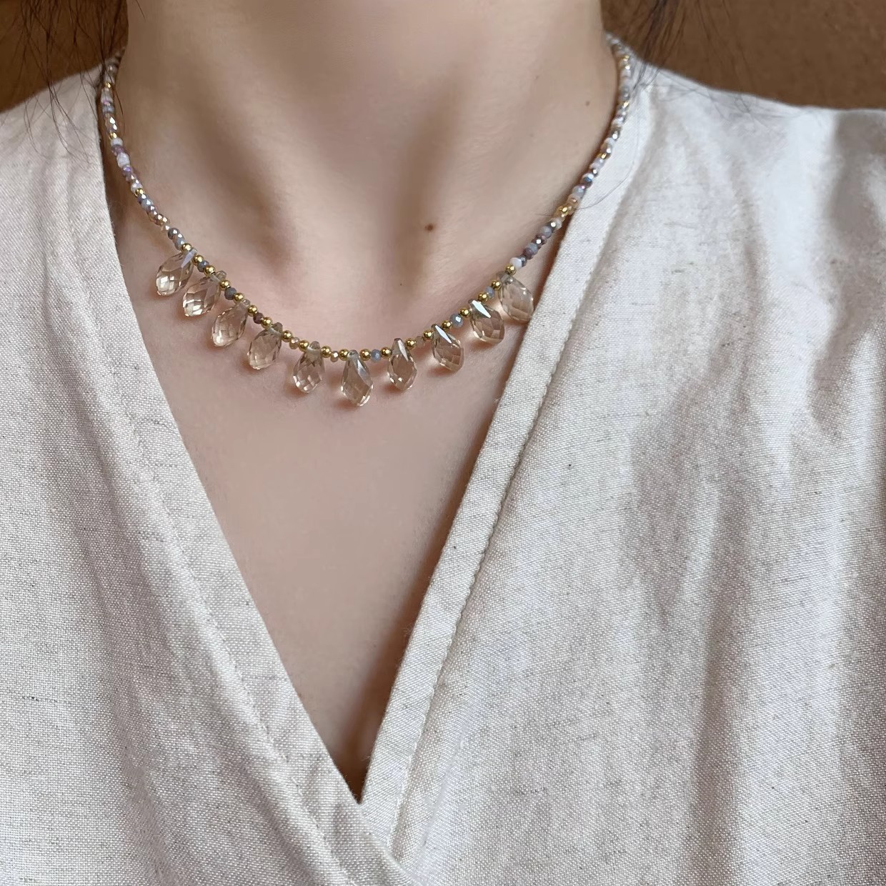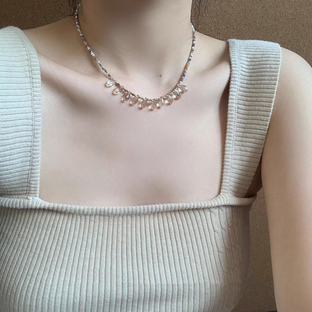 2025新型超仙気ビーズ水滴ネックレス女性夏軽豪華風ins大衆デザイン気質