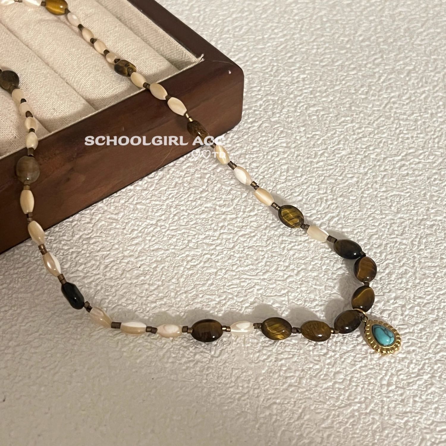 复古棕色系~美拉德松石手工串珠天然石项链韩版博主通勤锁骨链