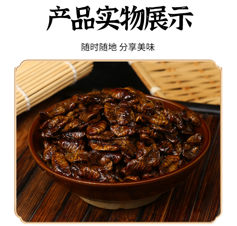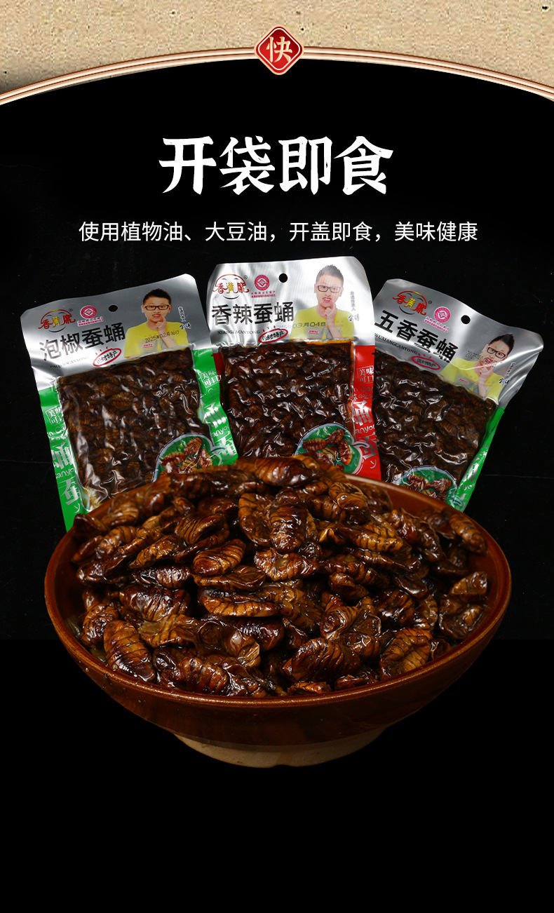 サクサクした蚕の蛹を酒のお供に 山東名物サクサクした蛹 高タンパク質の五香蚕の蛹 ピリ辛な蚕の蛹 すぐに食べられる