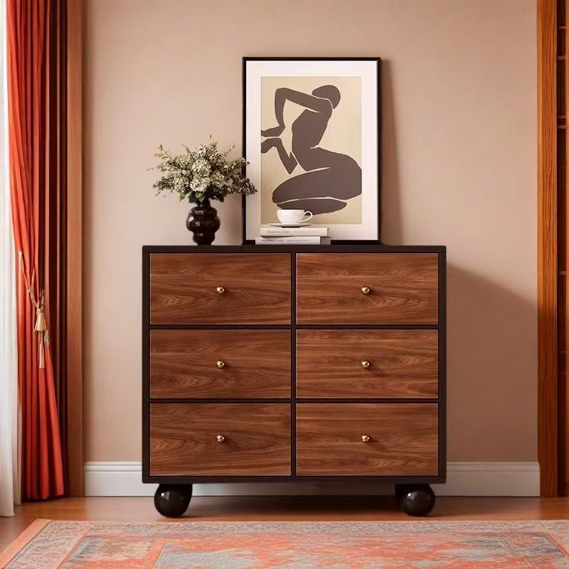 全無垢材6杯チェスト寝室壁面収納引き出しベッドサイド収納キャビネットウォールナットカラー5杯チェスト組み合わせ収納キャビネット