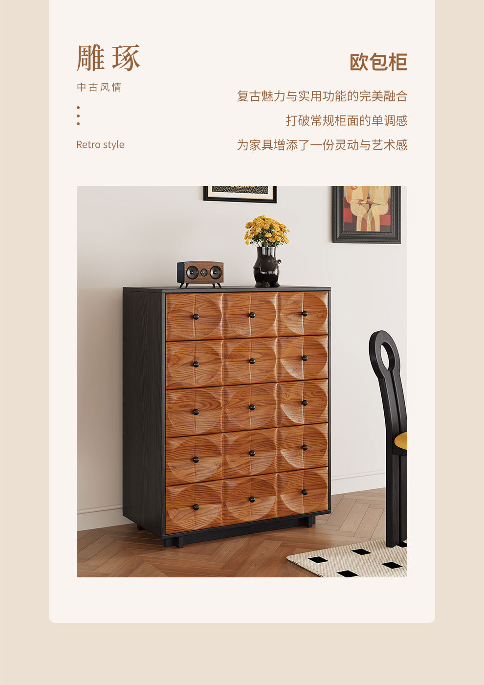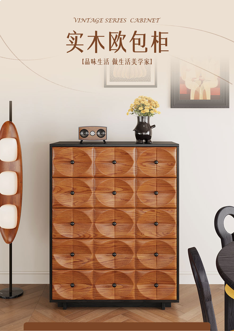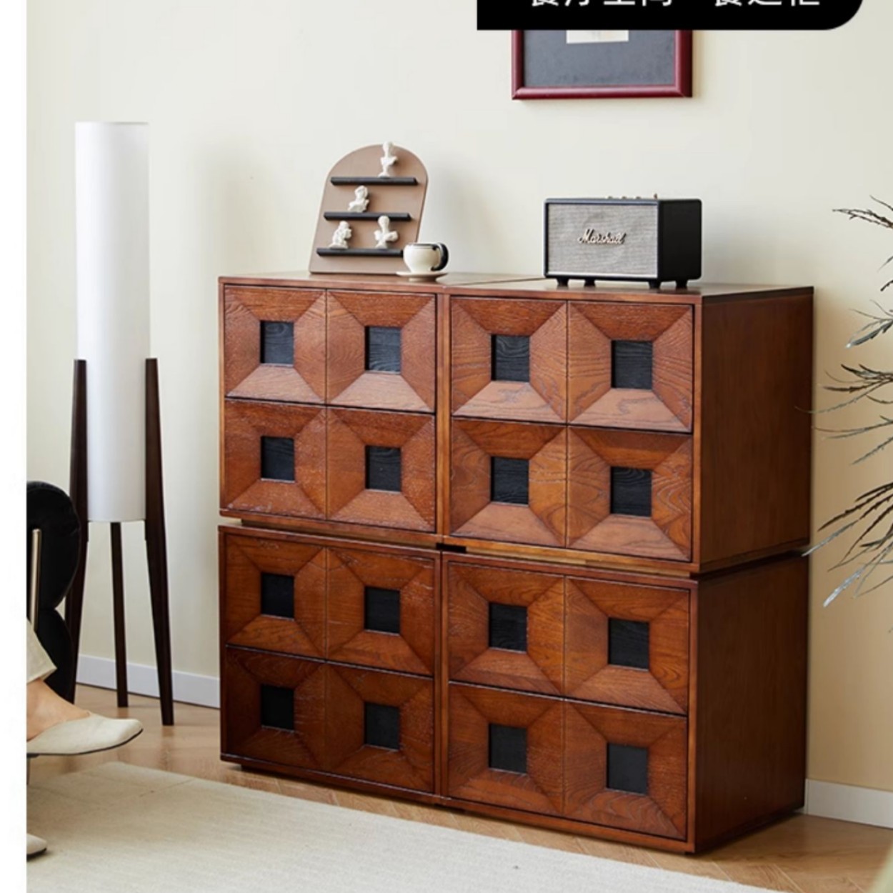 光阴收纳柜实木复古组合斗柜家用客厅边柜中古风储物置物卡门柜