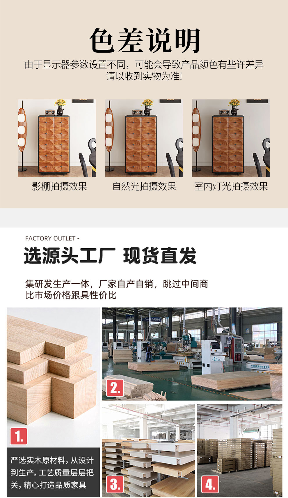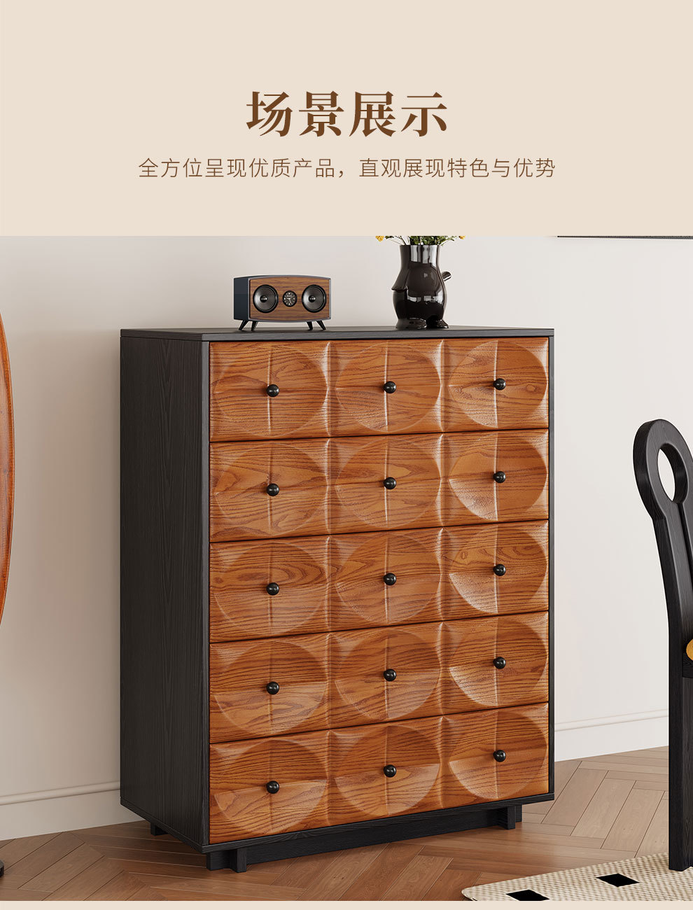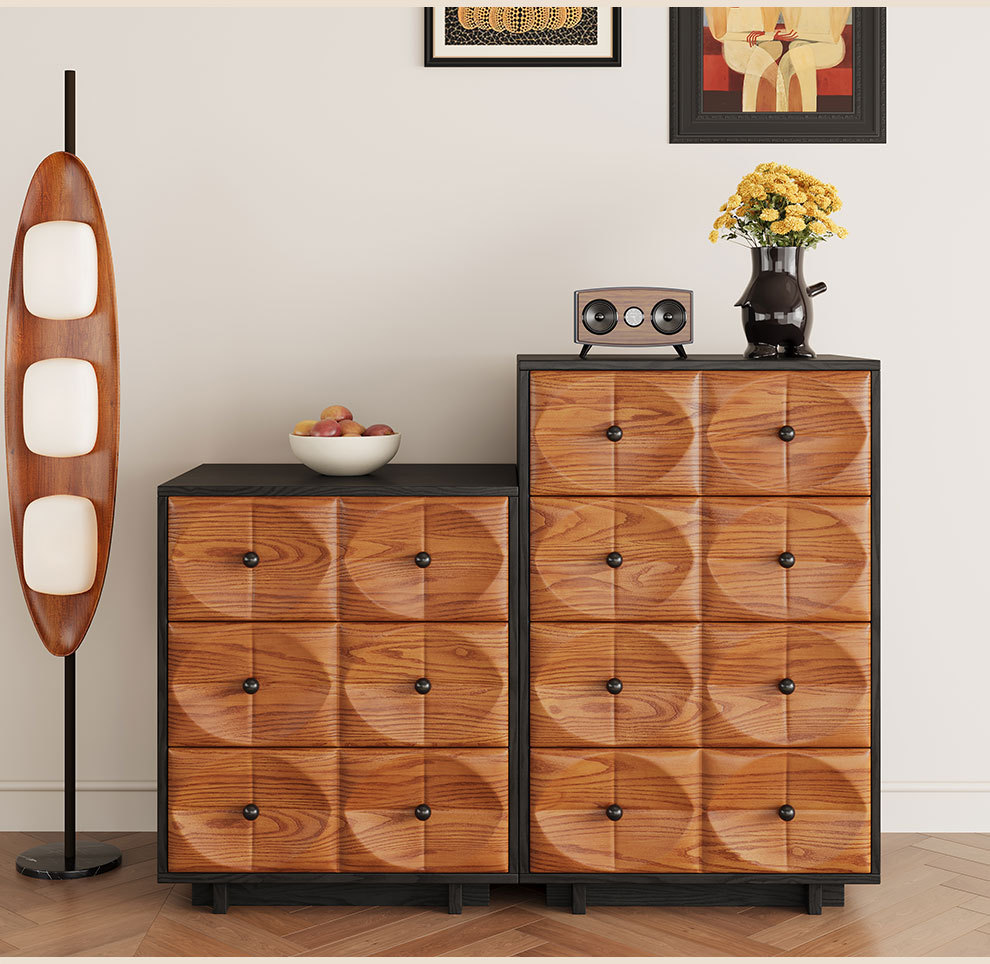 光阴收纳柜实木复古组合斗柜家用客厅边柜中古风储物置物卡门柜