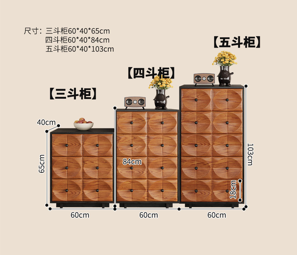 实木斗柜客厅靠墙抽屉柜复古储物柜卧室置物柜沙发边柜装饰收纳柜