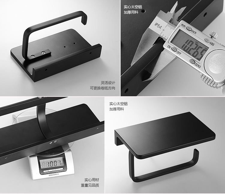 ヤバイ携帯電話ホルダー(パンチング),ヤバイダブル携帯電話ホルダー(パンチング),フラットブラックトイレットペーパーホルダー(パンチング),溝付き黒トイレットペーパーホルダー(パンチング),ブラックのデュアル携帯電話ホルダー (パンチング)