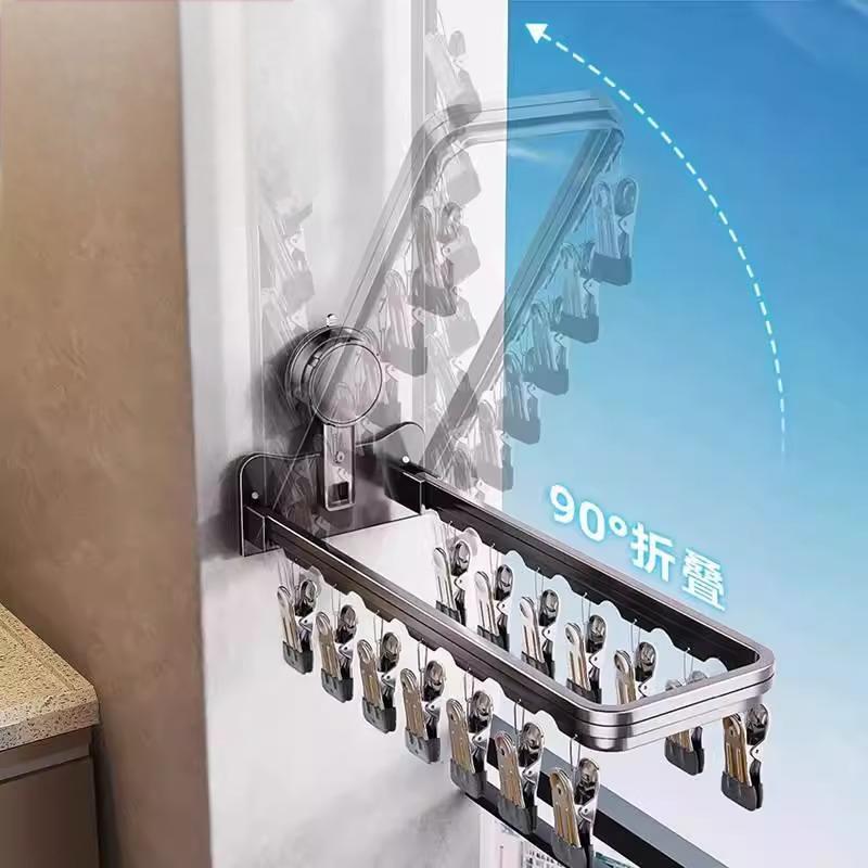 宇宙アルミ製折りたたみ式物干しラック、バルコニー用、家庭用、隠せる伸縮式物干し竿、室内物干しラック、窓辺物干し竿