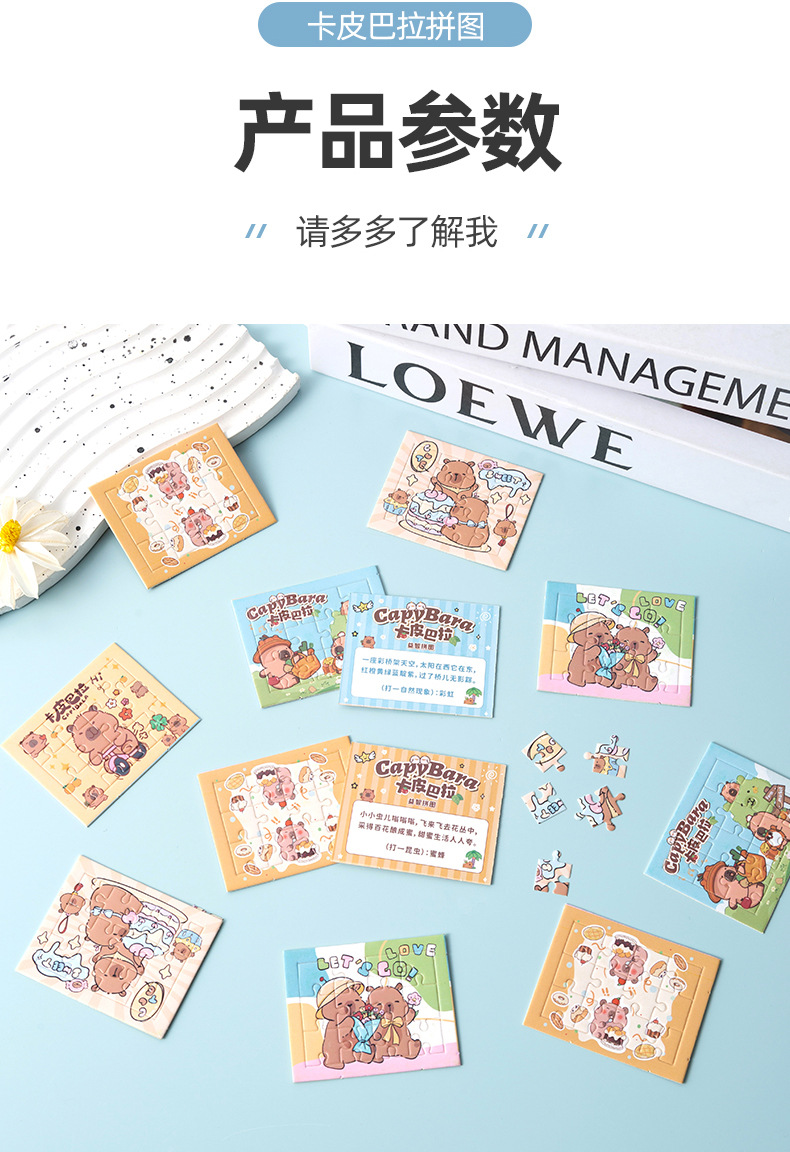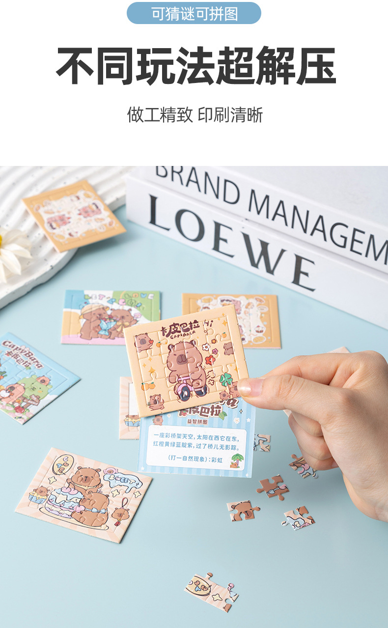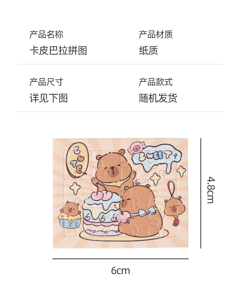 卡皮巴拉益智拼图可爱水豚DIY拼图趣味动手玩具幼儿园小礼物奖品