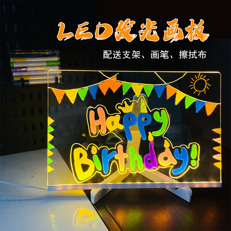 クロスボーダー RGB 透明アクリル蛍光ボード LED ライトボード発光書き込みメッセージボード看板消去可能な描画ボード