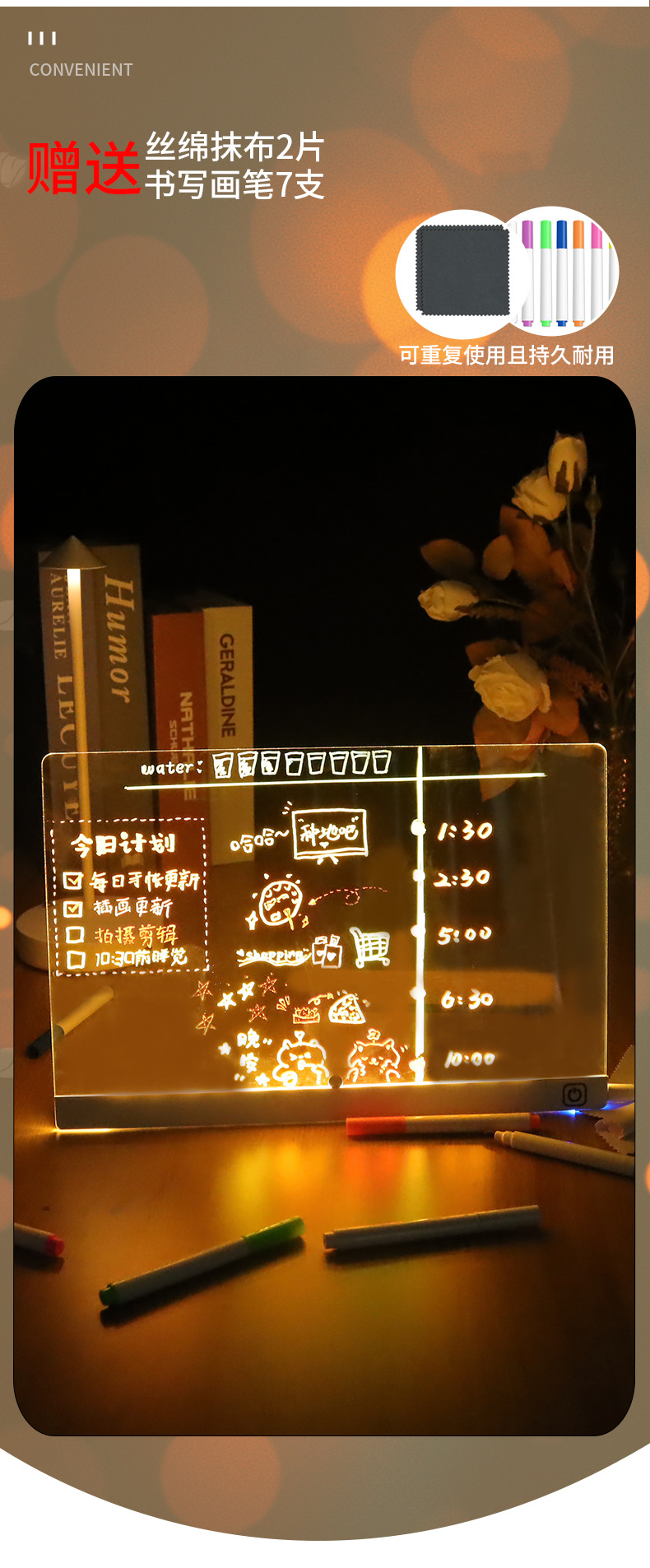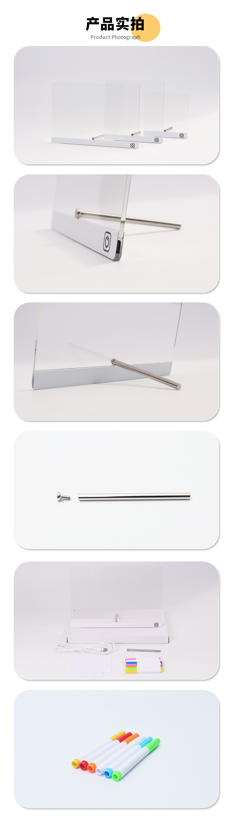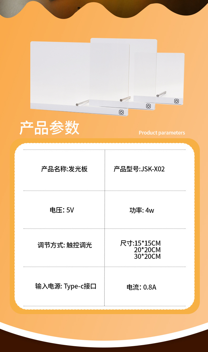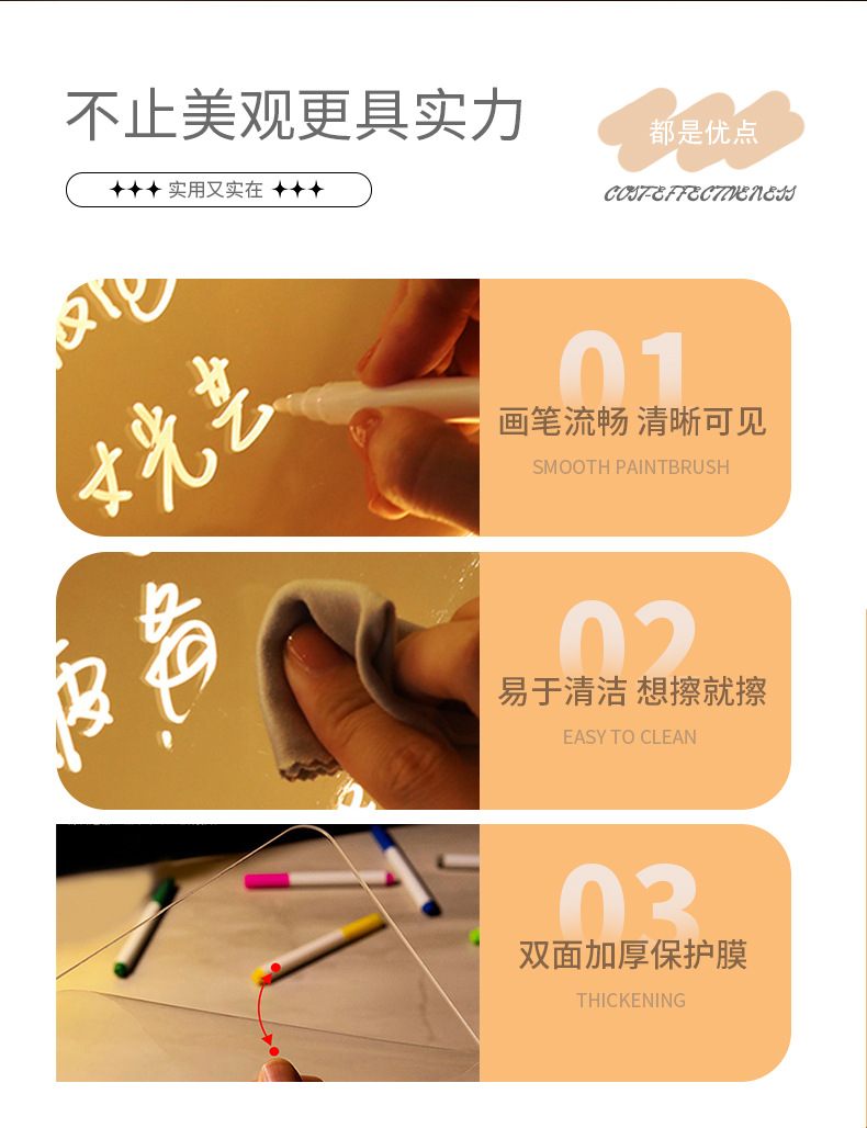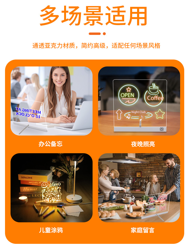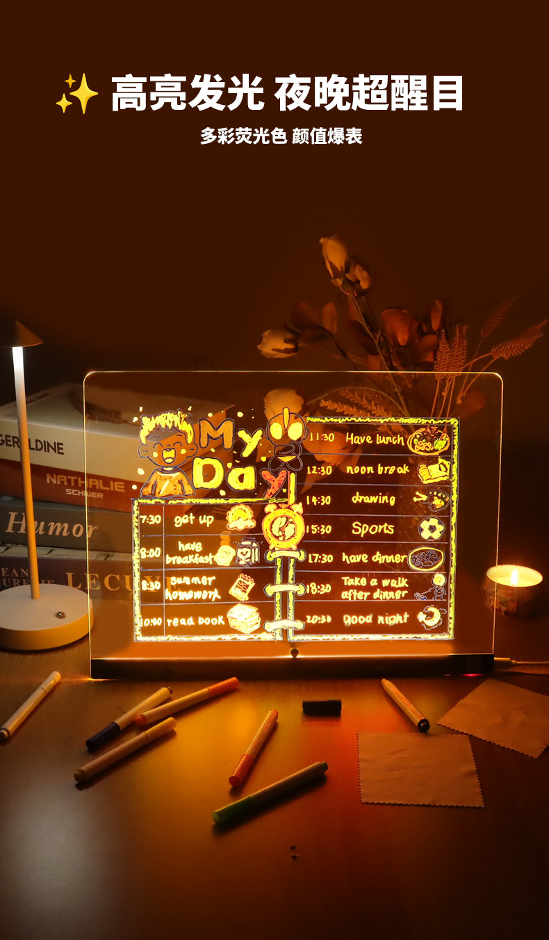 跨境可擦写发光画板儿童DIY涂鸦写字摆摊展示板亚克力荧光手写板