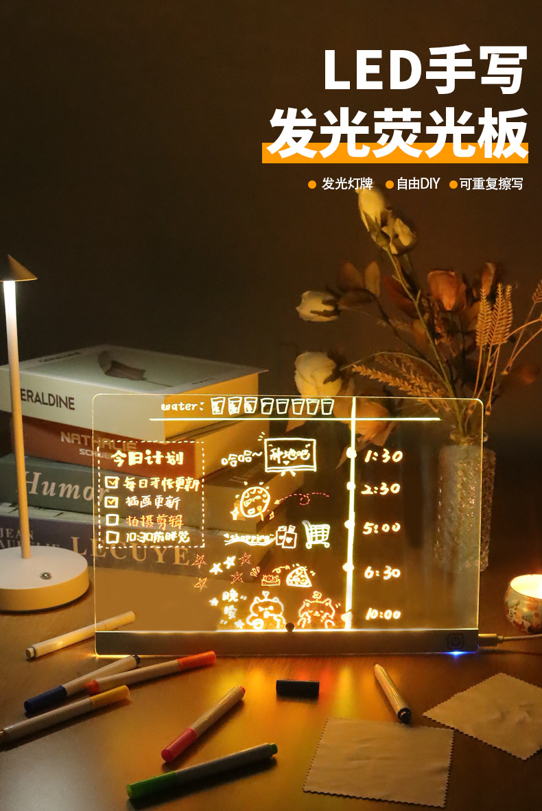クロスボーダーdiy透明アクリル蛍光LEDライトボード発光字メッセージボード看板消灯画板
