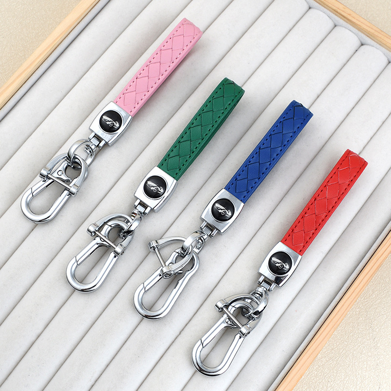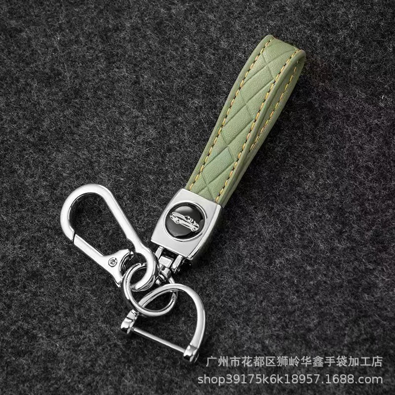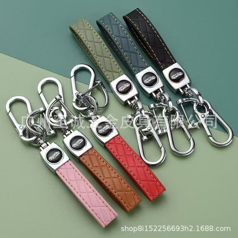 小羊皮菱形汽车钥匙扣创意车型logo商务防丢钥匙皮绳腰挂件批发