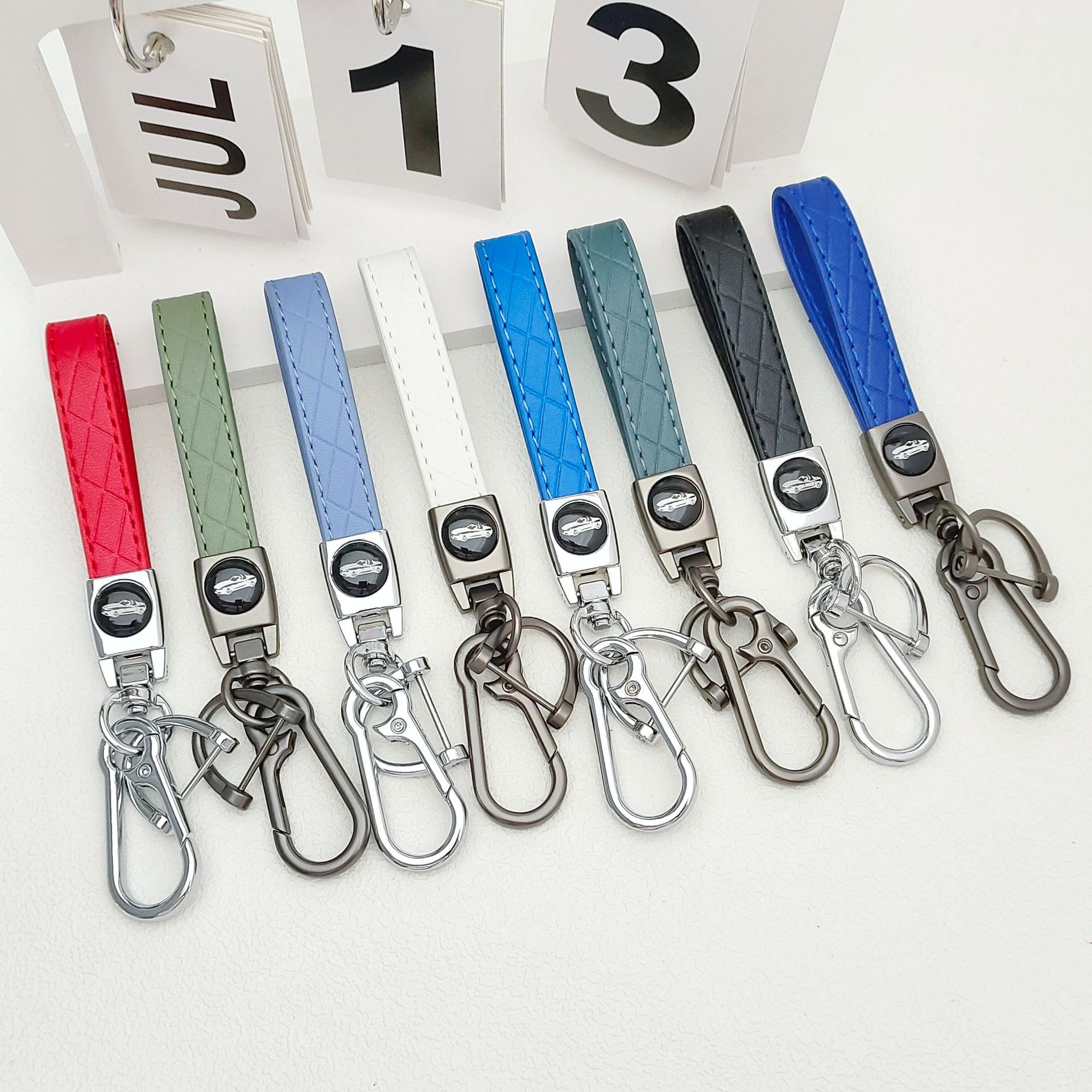 車のキーホルダー、コントラストカラー、菱形型押し、ロープ付き、クロスボーダーキーホルダーアクセサリー、キーホルダー