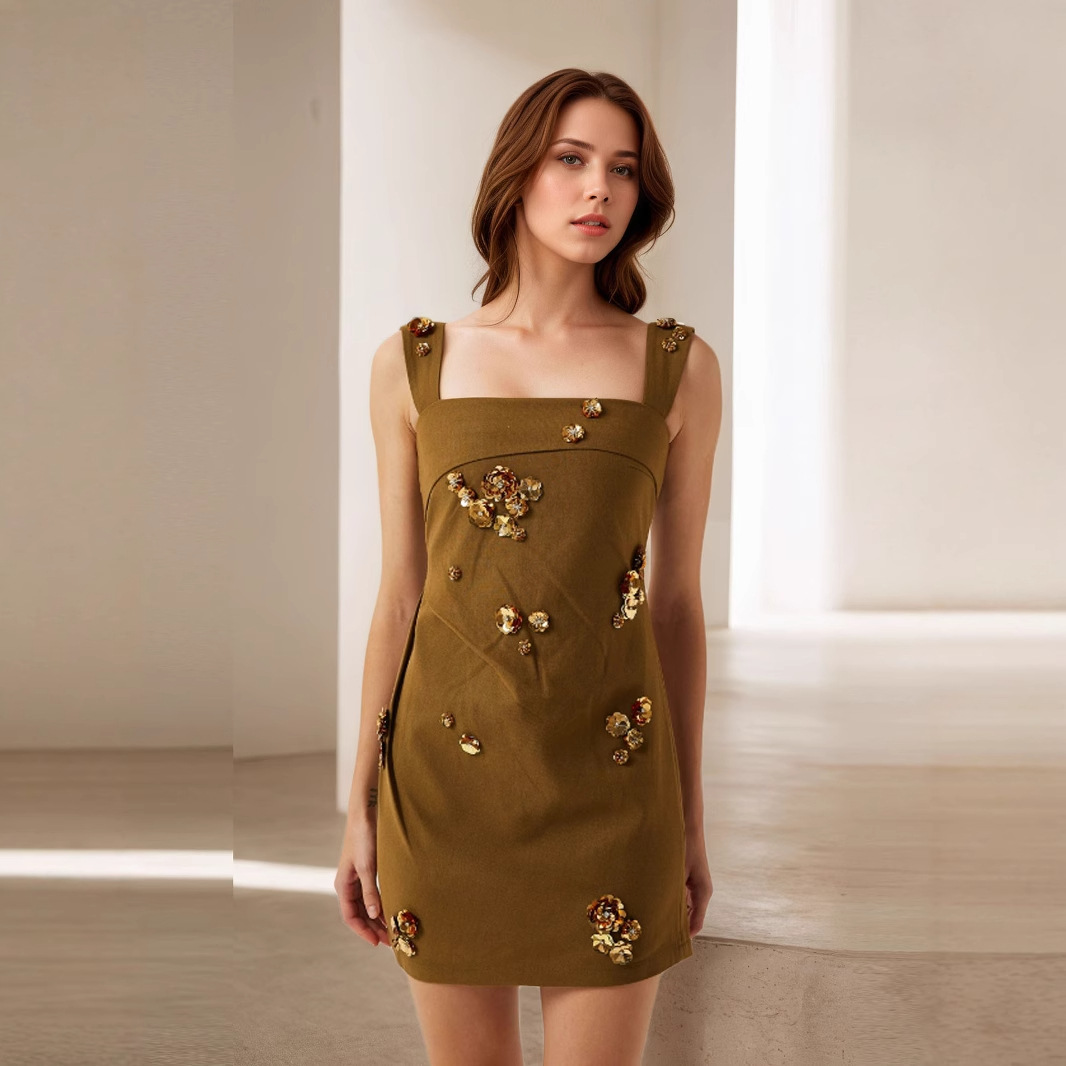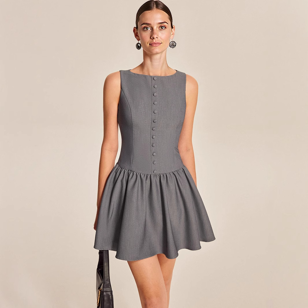 连衣裙女夏高级感新款收腰短款修身大气端庄气质简约小个子无袖裙