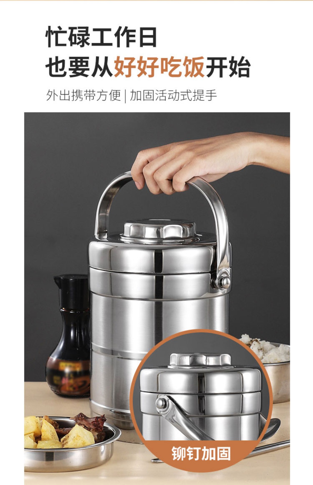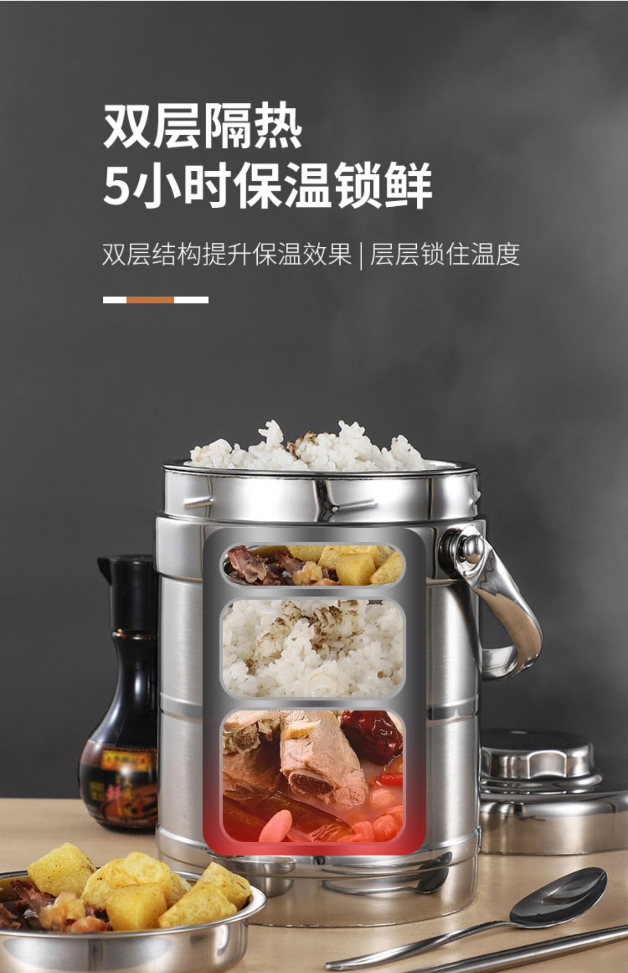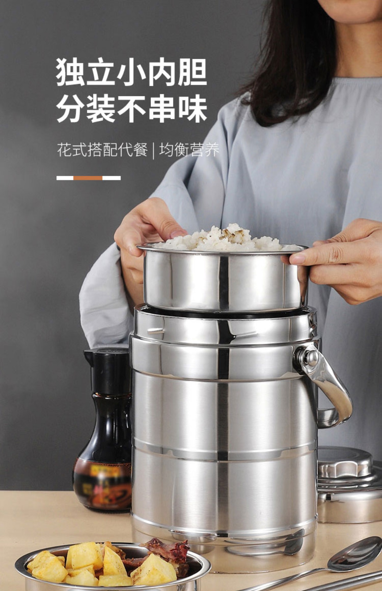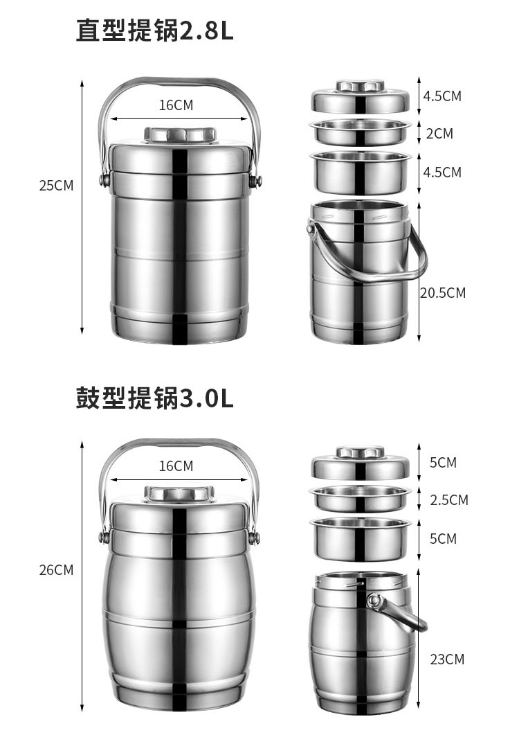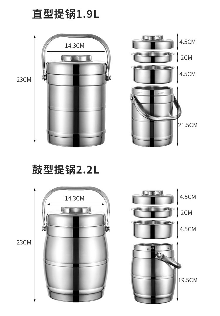 卸売断熱バケツステンレス鋼ポットエクストラロング断熱ランチボックス 2/3/多層大容量大人学生ランチボックス