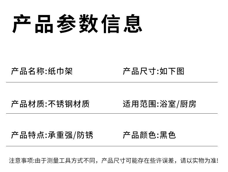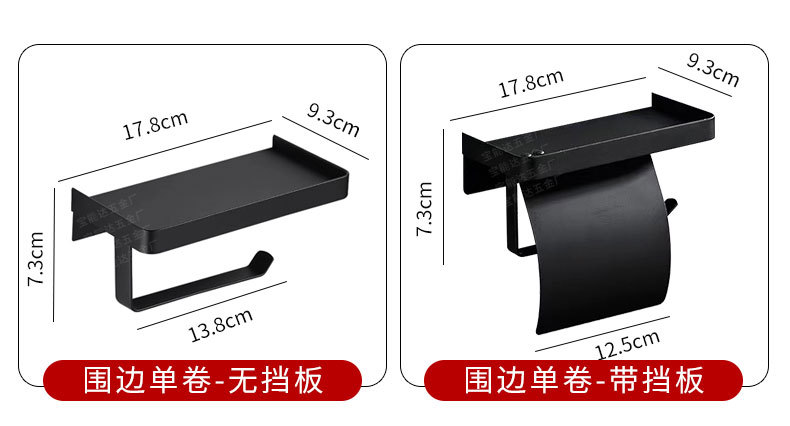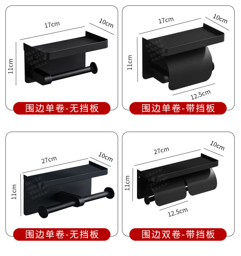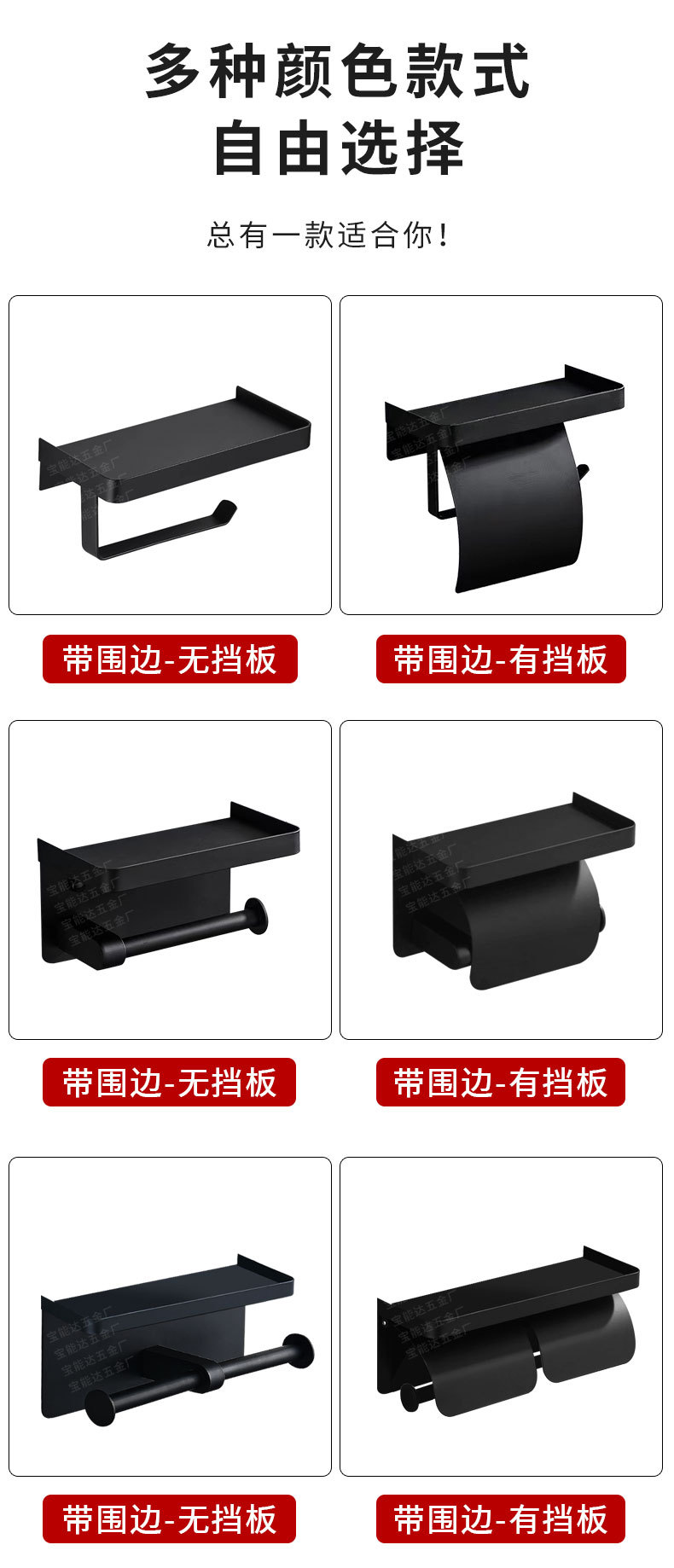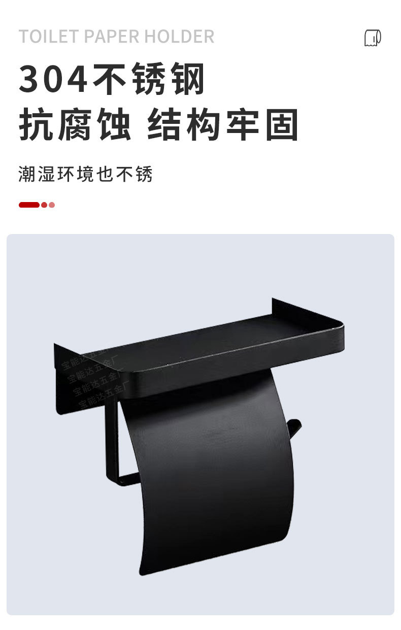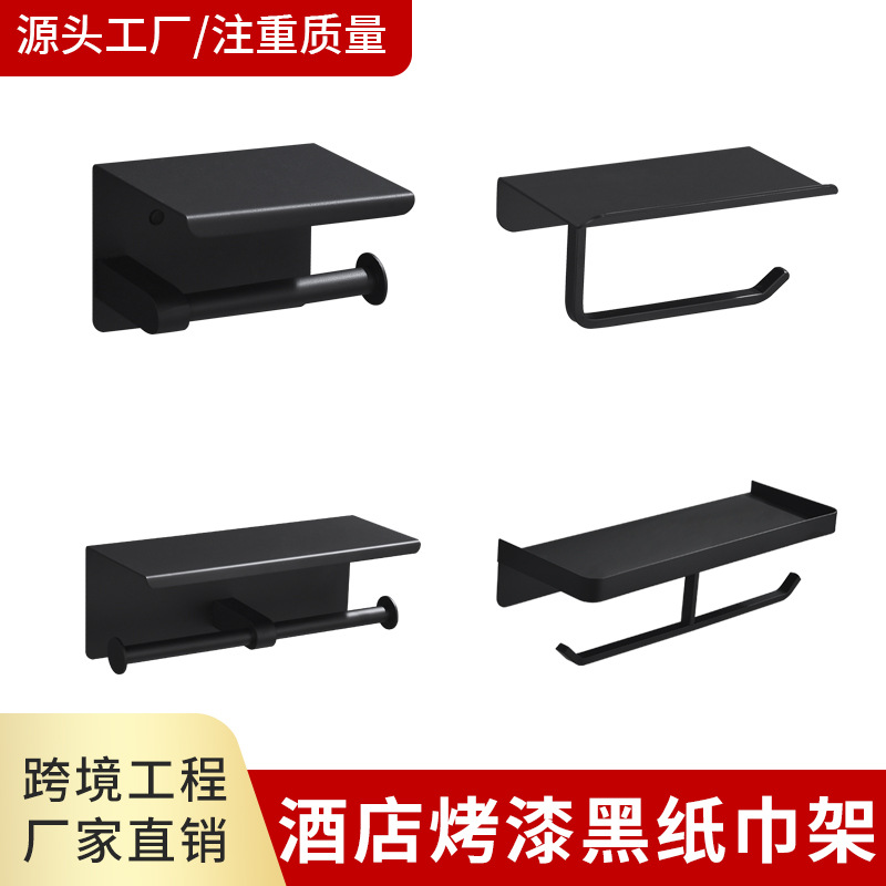 国境を越えたホテル工事黒色ティッシュホルダー304ステンレス鋼穴なし浴室ロール紙ホルダー防水卸売り