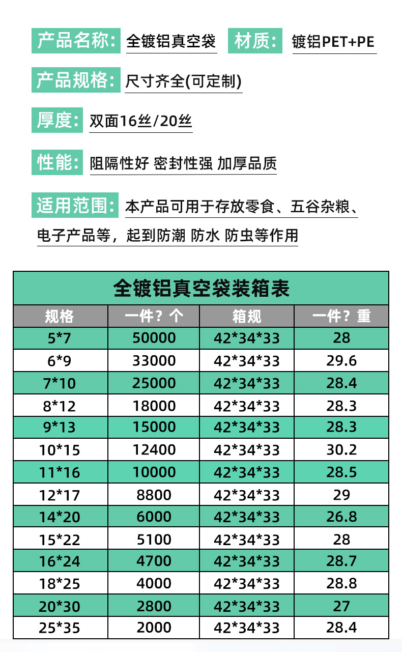 12*17二層18糸メーカー直供三辺封アルミ真空袋包装袋マスク袋食品袋
