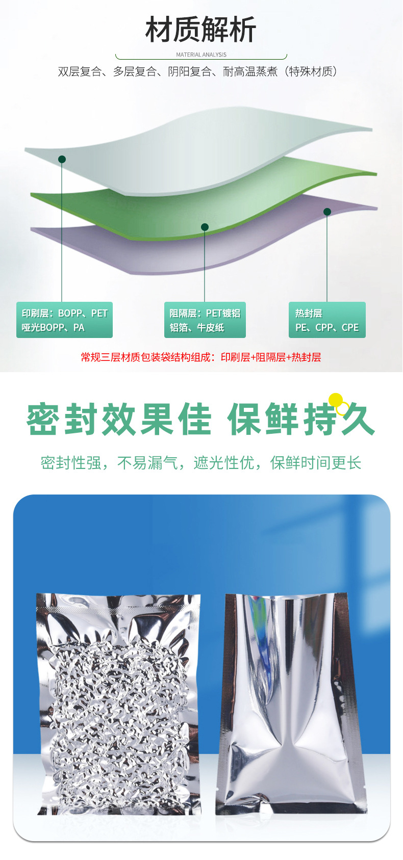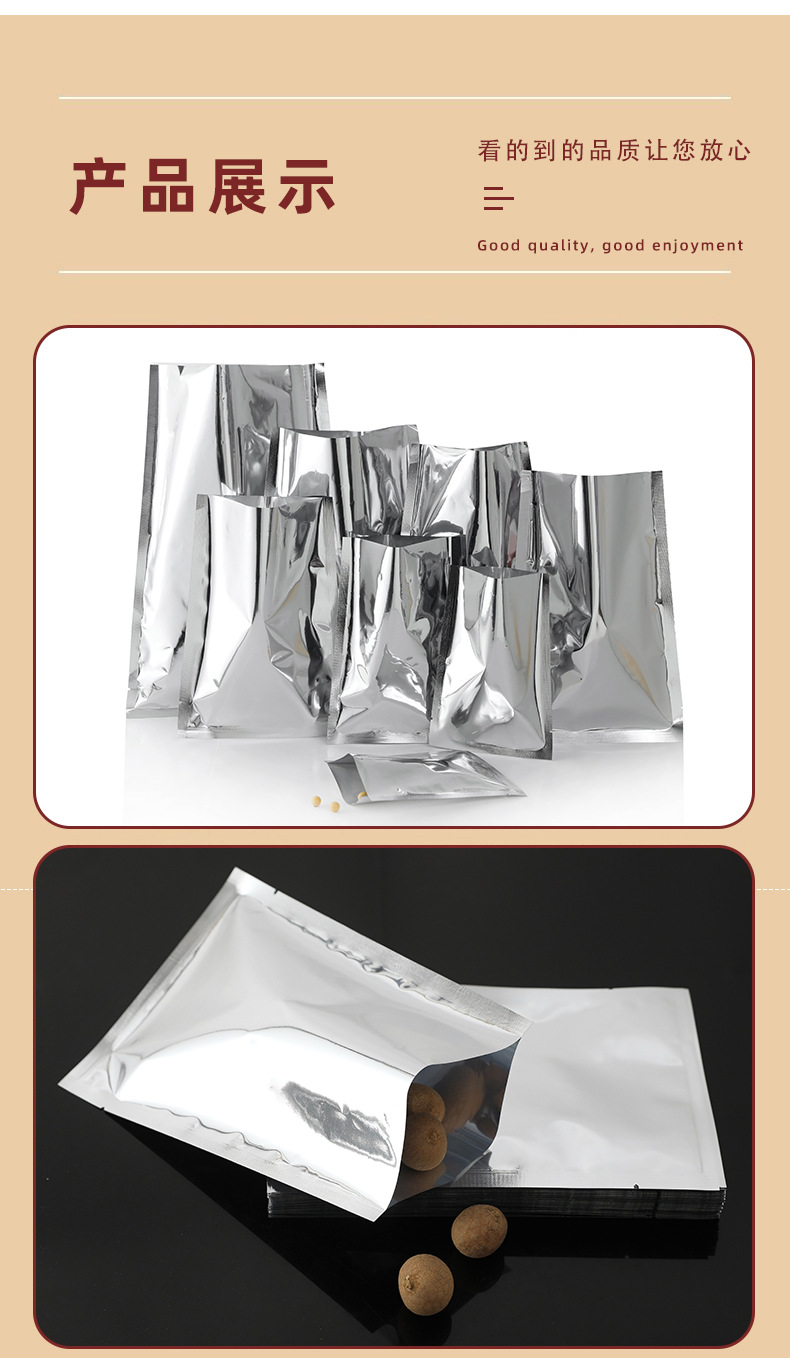 アルミ蒸着ブラインドバッグ、空包装袋、平口真空袋、おもちゃ袋、茶葉袋、マスク袋、食品包装袋、アルミ箔袋